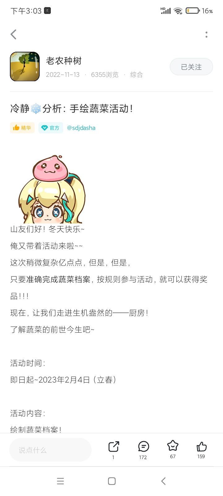 Q1:诶为什么我今天送不了礼呀,是因为没树吗?可是我看论坛有人可以送礼呀。Q2:之前的官方画蔬菜活动,是参与就有种子还是要评选呢~求告知谢谢๑•́₃•̀๑