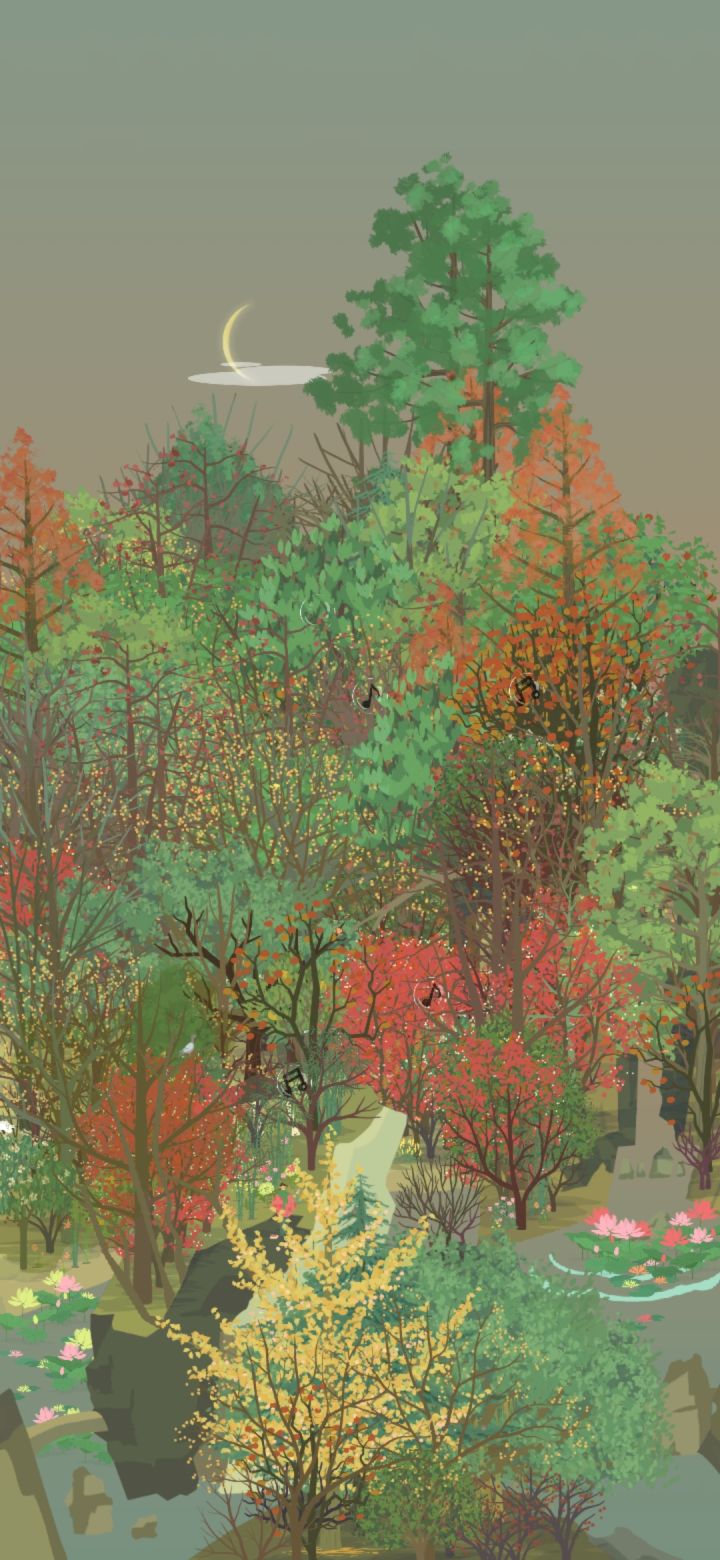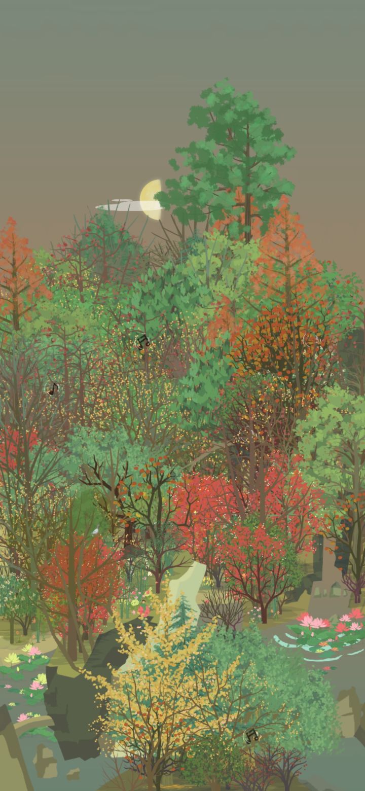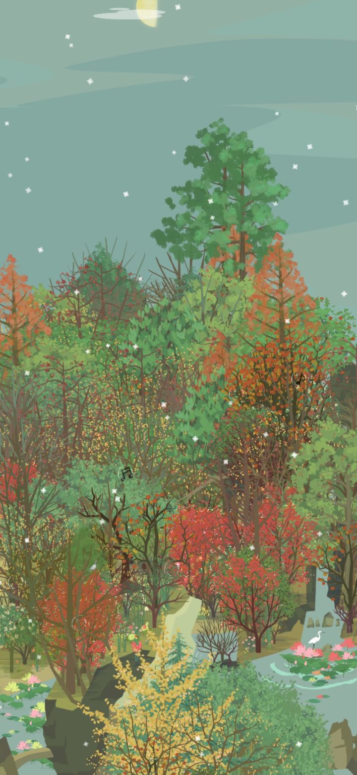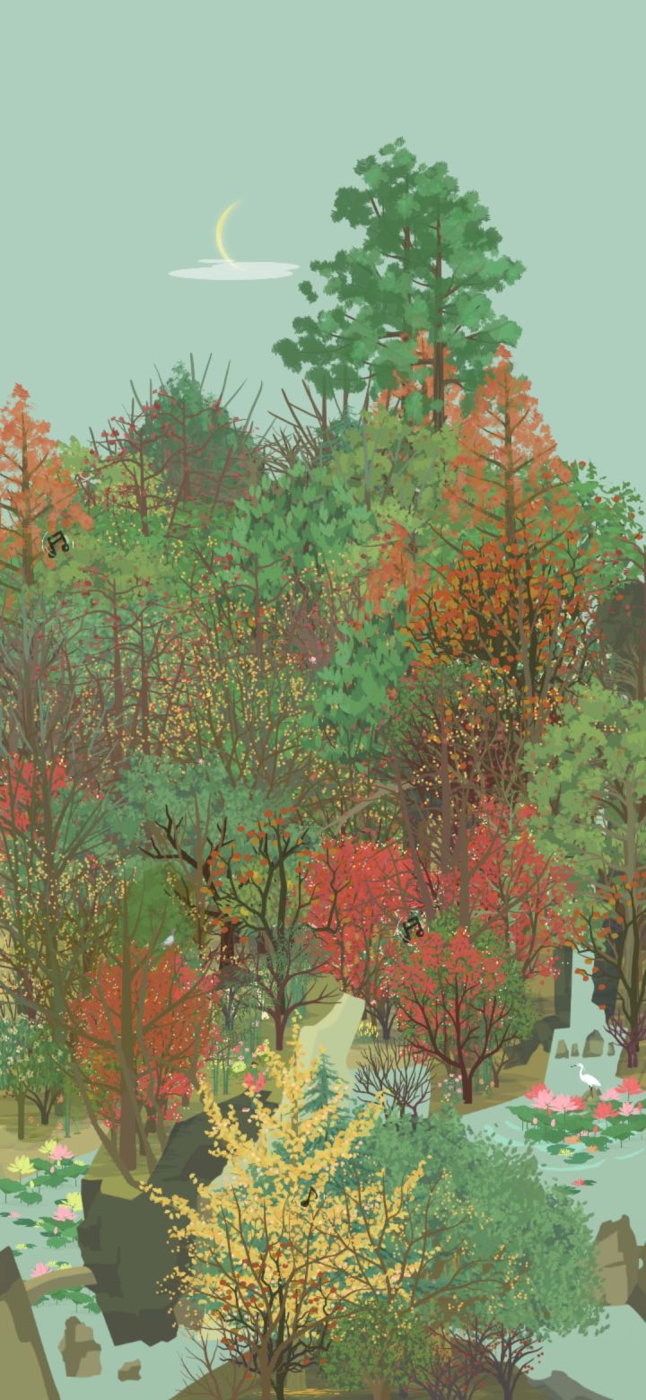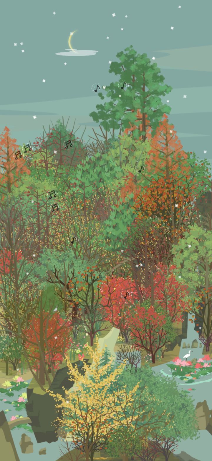小会,院墙上的爬山虎的颜色变得斑驳,夏天绿色的墙,变成了秋天彩色的墙。秋雨连绵,风吹着潮湿的树叶,洒满山林。银杏亮晶晶黄澄澄的叶子在风里摇摆,落在我的衣服上。我不敢走得太快,怕风把身上的落叶吹走,便撑着伞在红黄斑驳的山里慢腾腾地走。路面湿漉漉,细雨吹湿衣服下摆,拿手一拂,就湿淋淋的。林子里没什么泥,到处都是厚实的落叶,不像我们小时候在山下跑,遇上大雨之后,连鞋子都陷进泥土里。一只蘑菇冒出头来,细杆上顶着大脑袋,享受雨水润泽。