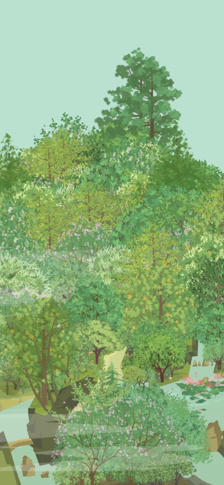 小会,山上的树越来越多,林子越来越密,鸟鸣声越来越杂。我已经听不出四声杜鹃的声音了,它淹没在鸟群中,一切就像小时候的山林一样。住在枫杨上的两只喜鹊还在那儿,哺育着后代。昨夜我做了个梦,梦到它们的后代变成了鹰,直击长空。“返景入深林,复照青苔上。”林中没有人,只有鸟兽的脚印印在青苔上。它们大都不喜欢踩青苔,更喜欢干燥的小道。