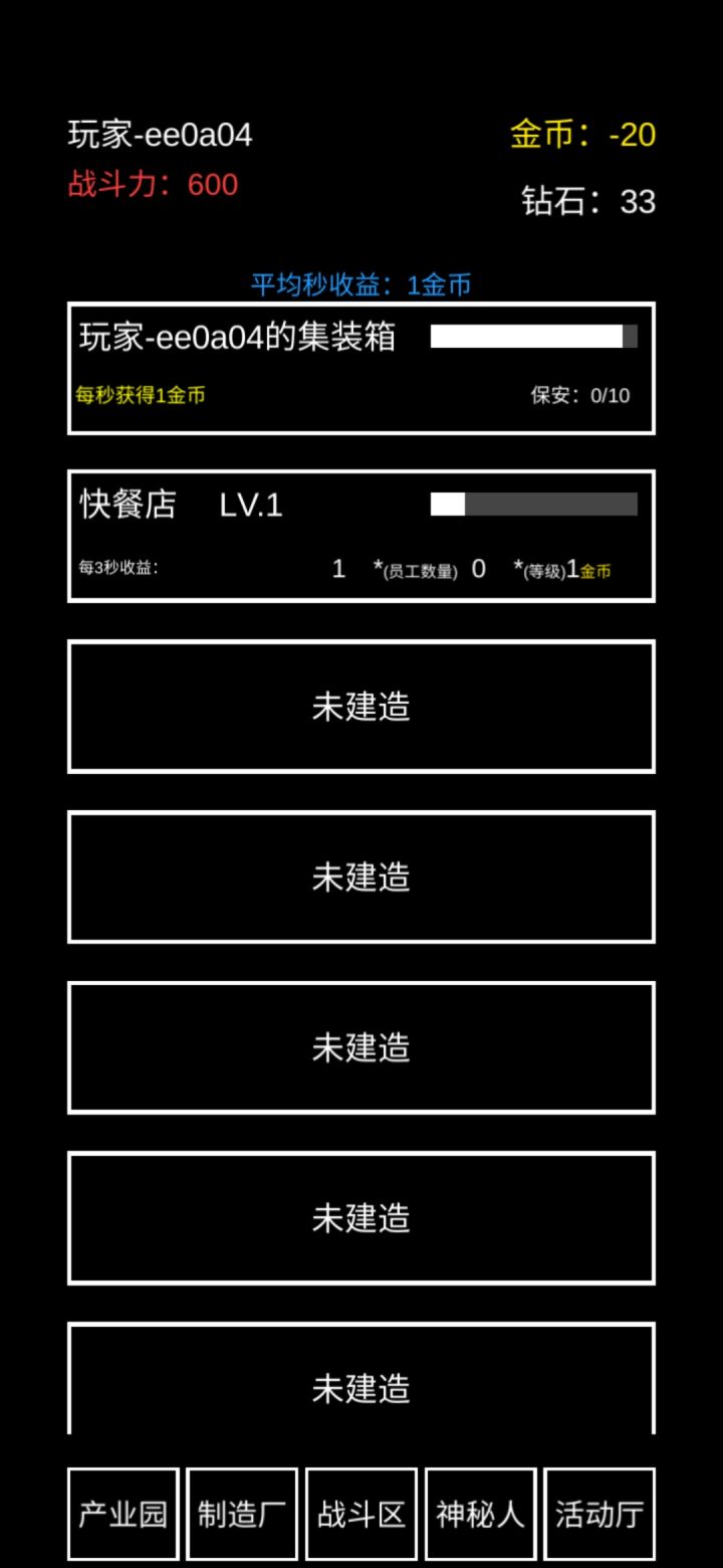 玩了一天,刚进去的时候人都蒙了,这是啥呀,啥都没有,还要自己开店,费用还贵的吓人,呸!挂了一会,真香啊,没有烦人的广告,想挂着就挂着不想挂就退出来回来收金币!害!这个游戏不就是护肝嘛!报告一下战况,最高开到了万豪旅馆,快餐店加一,不用问攻略,问就是撸快餐店,毕竟快餐店才是永远的神嘛!