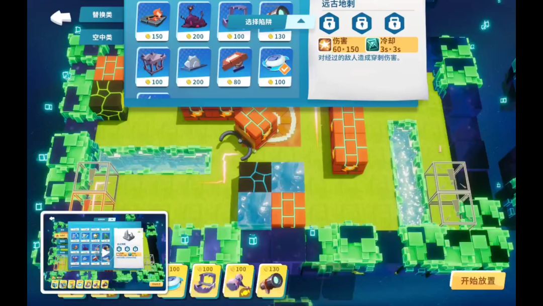 本来想用圈套三连的,但是前期如果伤害不够让恐龙战士召唤出大量恐龙就很难顶,还是选择老三样:地鼠锤+风扇+割草机灌伤害#糖果灾难攻略