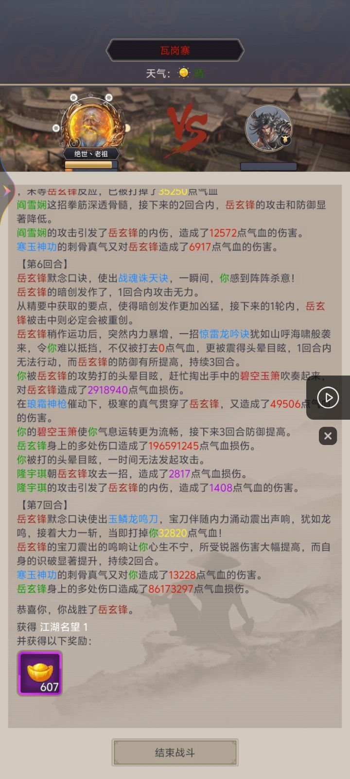 之前出了地龙但是第一个怪还差一丝血才死,这次是晴天打的加了百分之十攻击,出了个地龙就过了