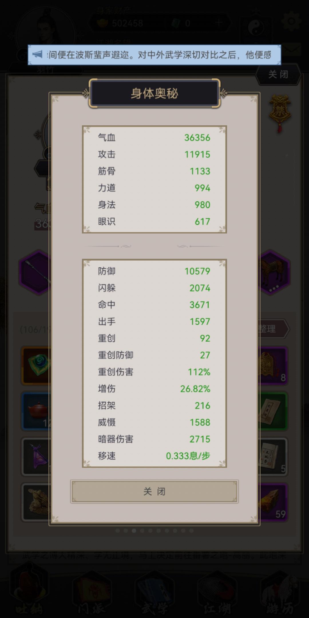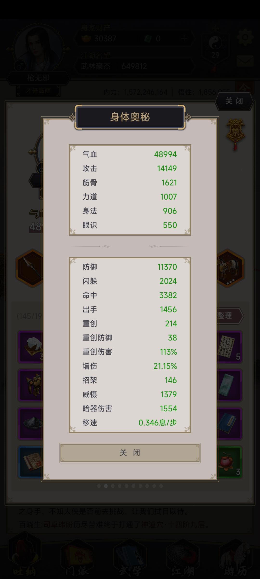 其他大侠过本陆的属性图(由于过图还受到武学及破敌御敌的影响,属性仅供参考哦)
