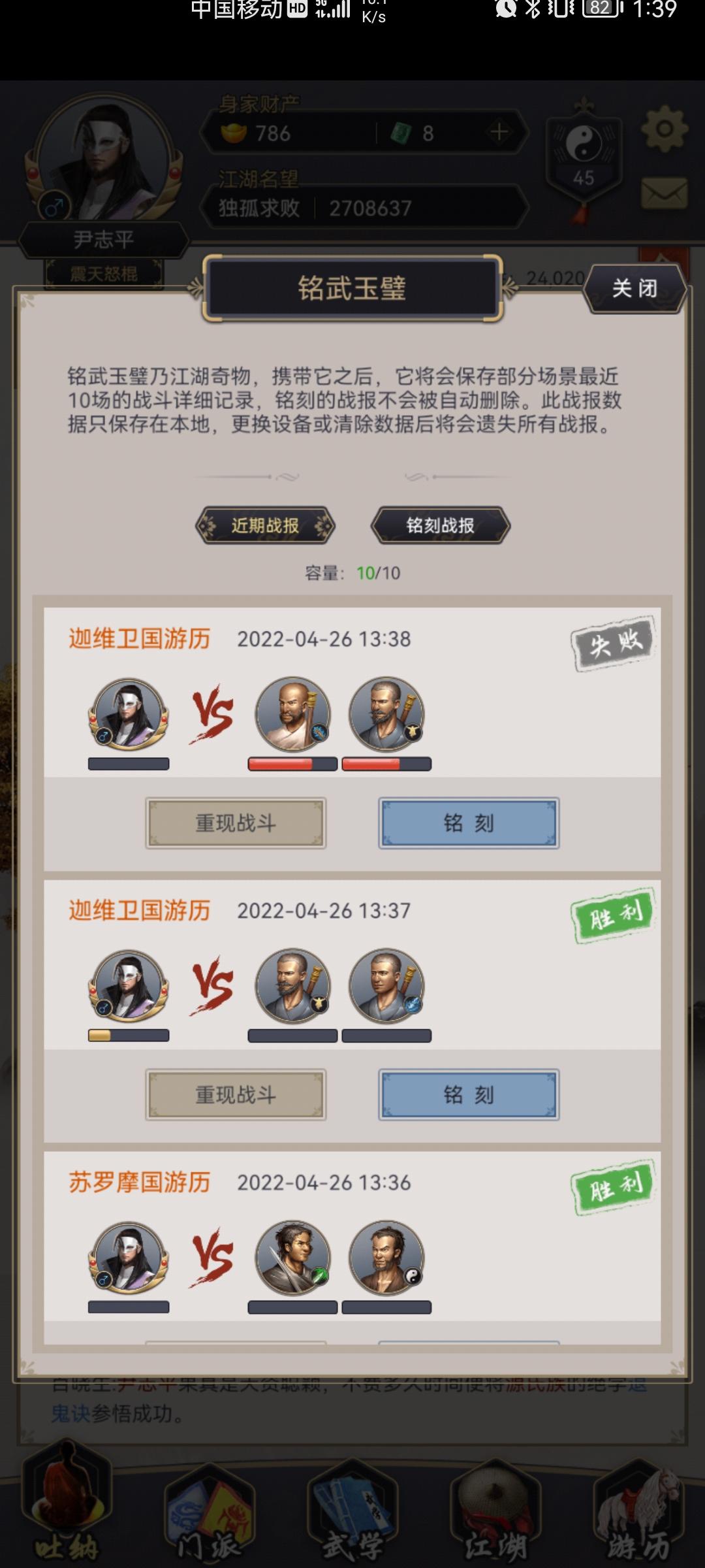其他大侠过本陆的属性图(由于过图还受到武学及破敌御敌等其他因素的影响,属性仅供参考哦)
