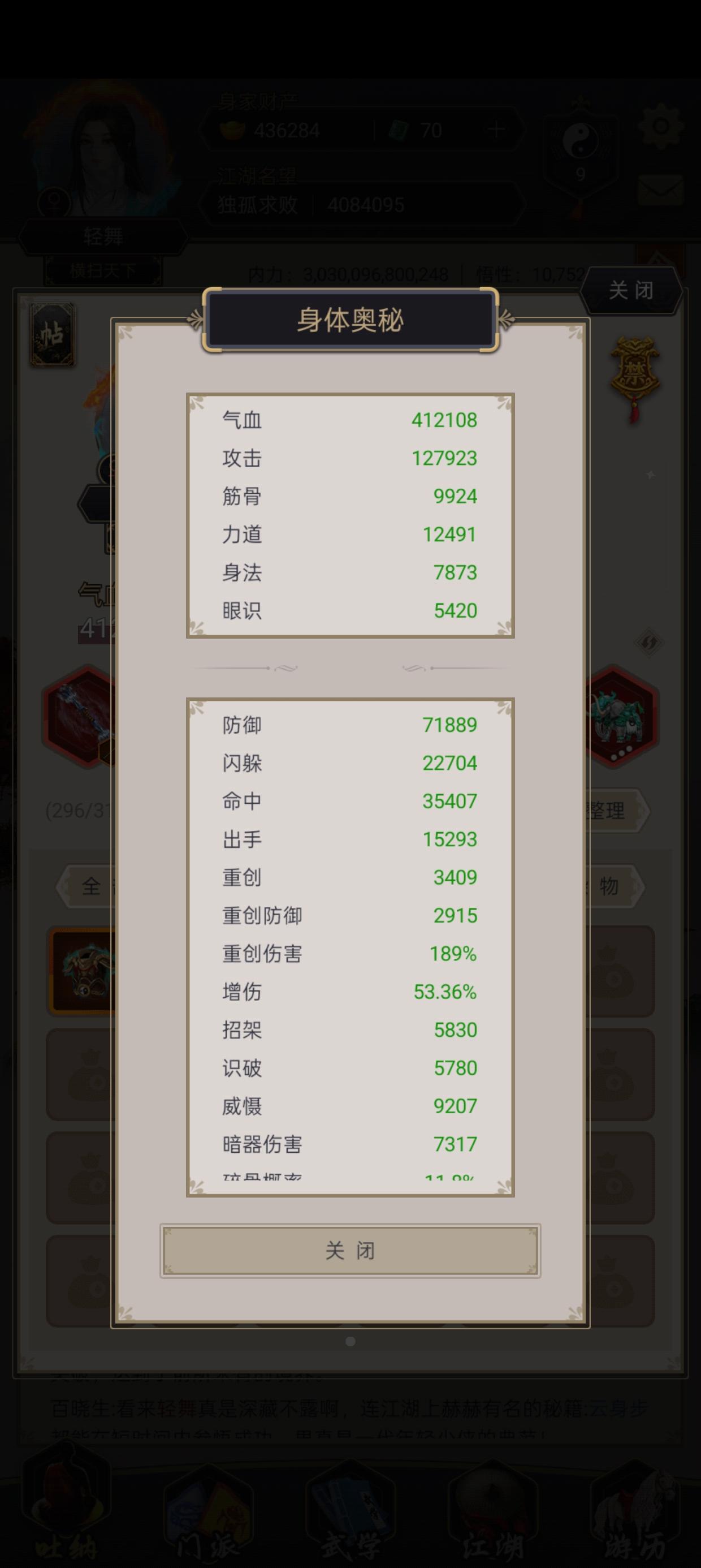 开服三个半月24-9 气海9 洗髓29 拳破44 剑御36进入125坐牢
