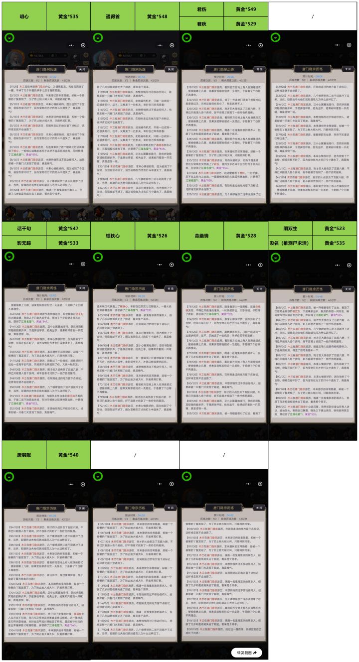 测试数据从里面很明显可以看到没有尸求活的名字,假设那个没名字的就是尸求活,那尸求活三命还差两次黄金,以下为我自己打的素材,所以判断是少黄金,麻烦官方赶紧修复,说什么黄金有波动,好好看看这些数据(525、530、542算平均532一个,一轮少两个1064,36轮38304,36轮少了近4w,我就奇怪为什么雷火门和唐门隐宗历练差不多,红雕像+天运情况下,雷火门26.1w,唐门隐踪26.7w)