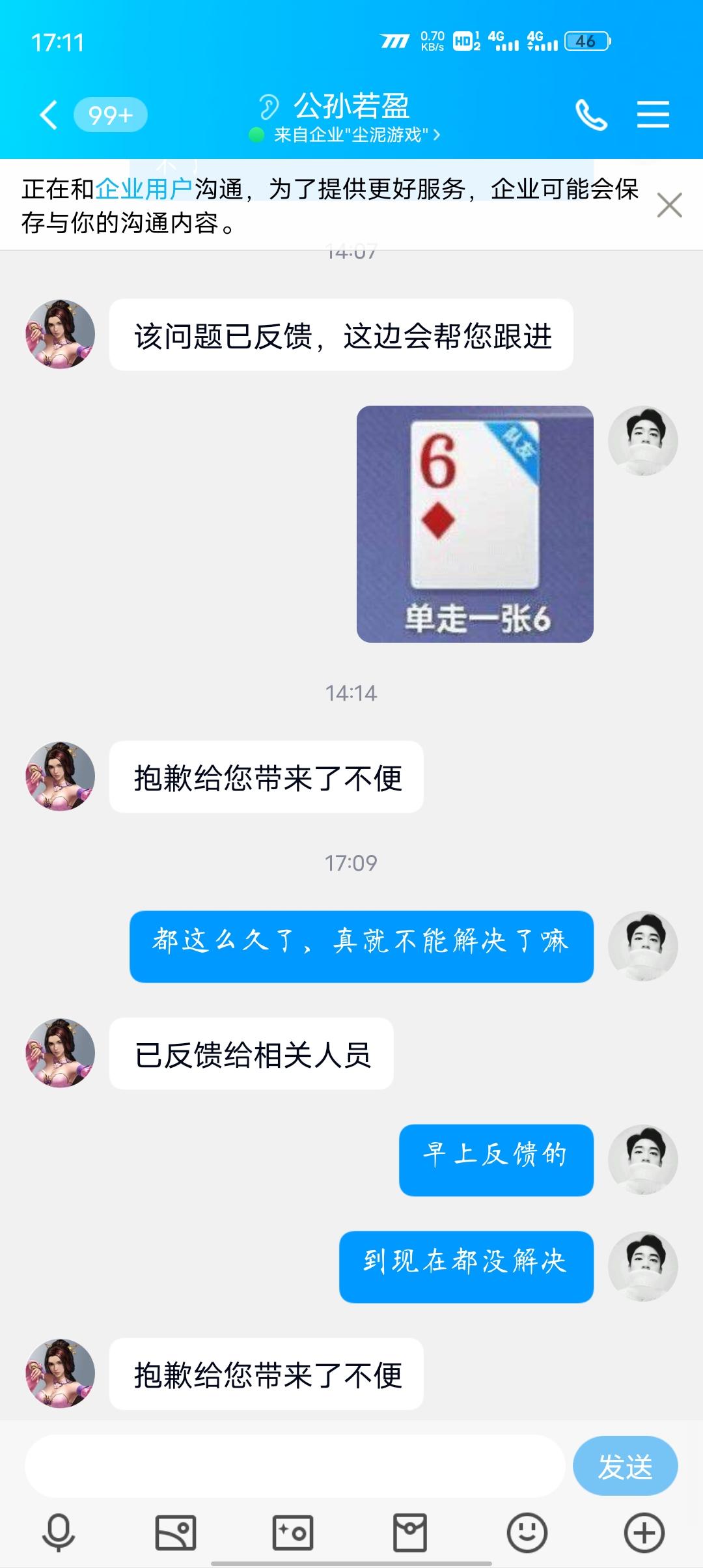 早上进自在阁发现回黑屏,给客服说了就一句会反馈,反馈了一天到现在也没解决,问就是会反馈,那你但是说解决了没啊