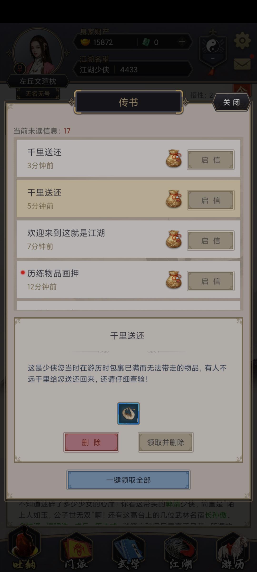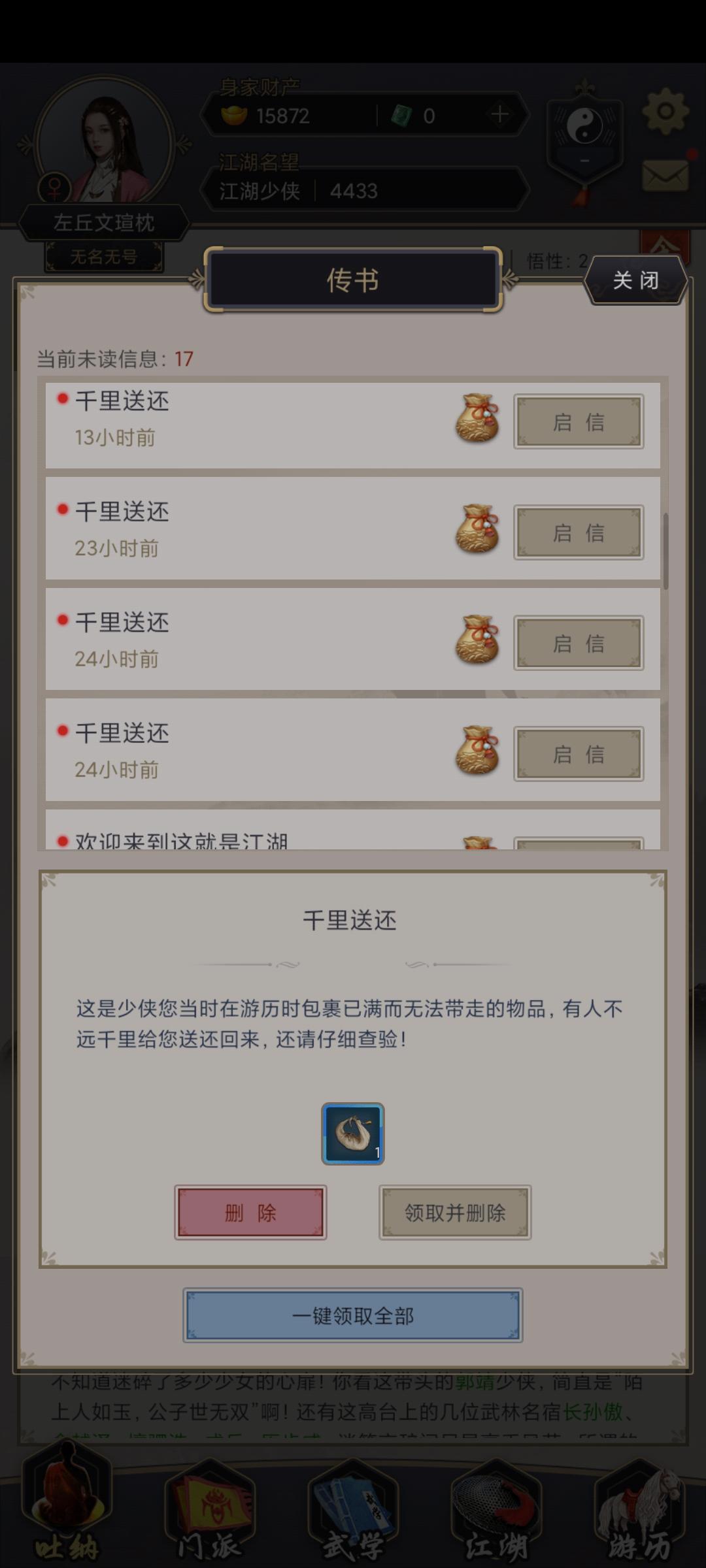 行囊里面的东西不能删吗我还特意买了个行囊结果根本领不了,邮箱里面的几十个东西全都领不了。。。