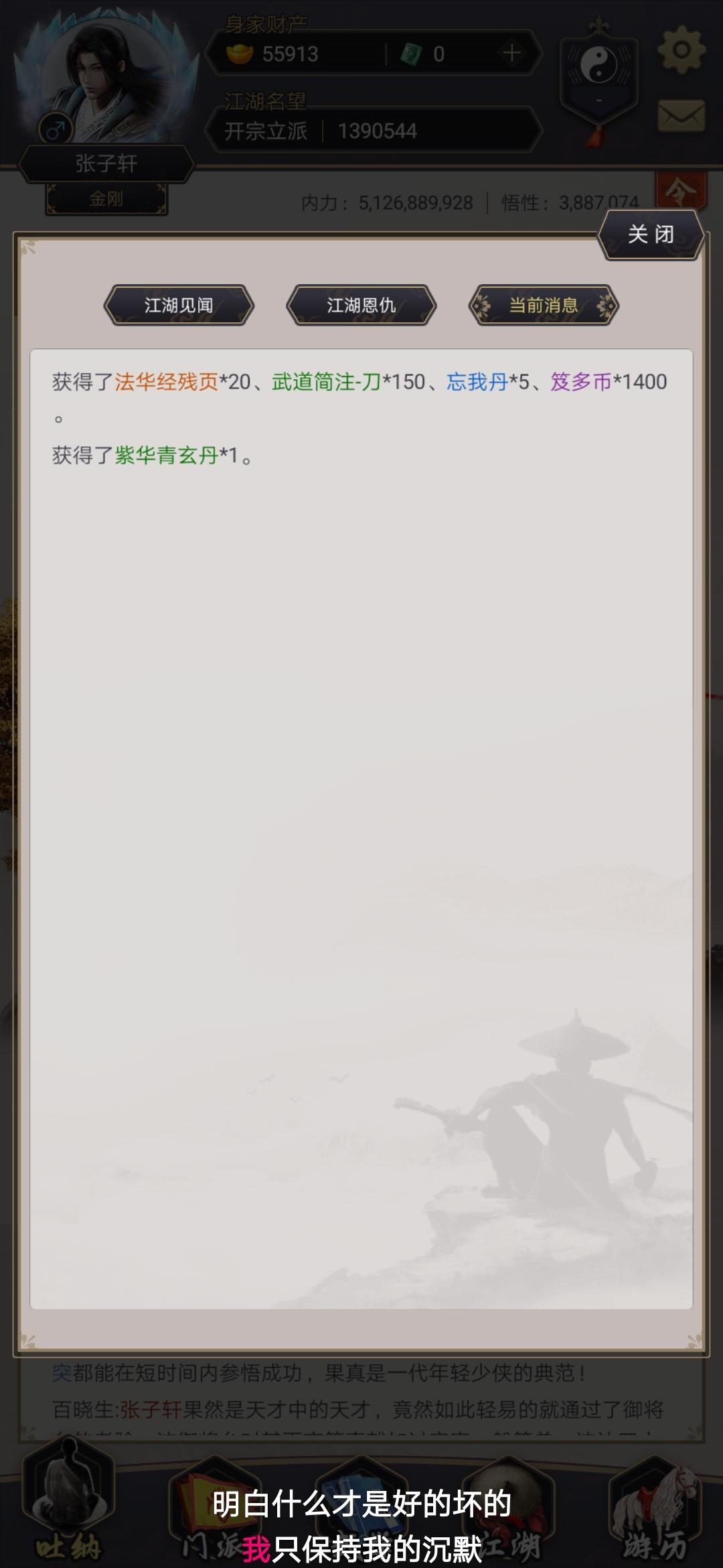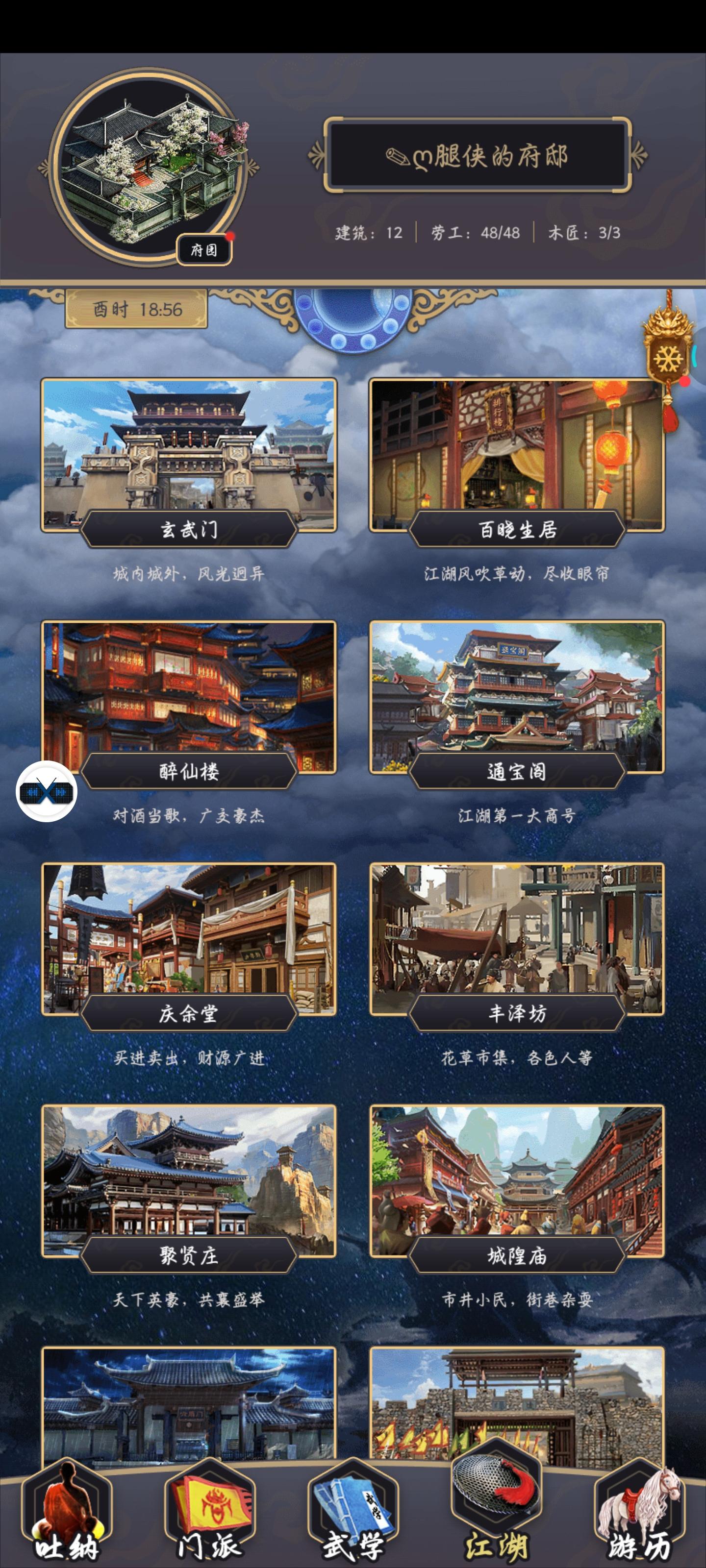 建议把江湖页面背景换成随四季变化的流动天空背景图使游戏更具真实的江湖。