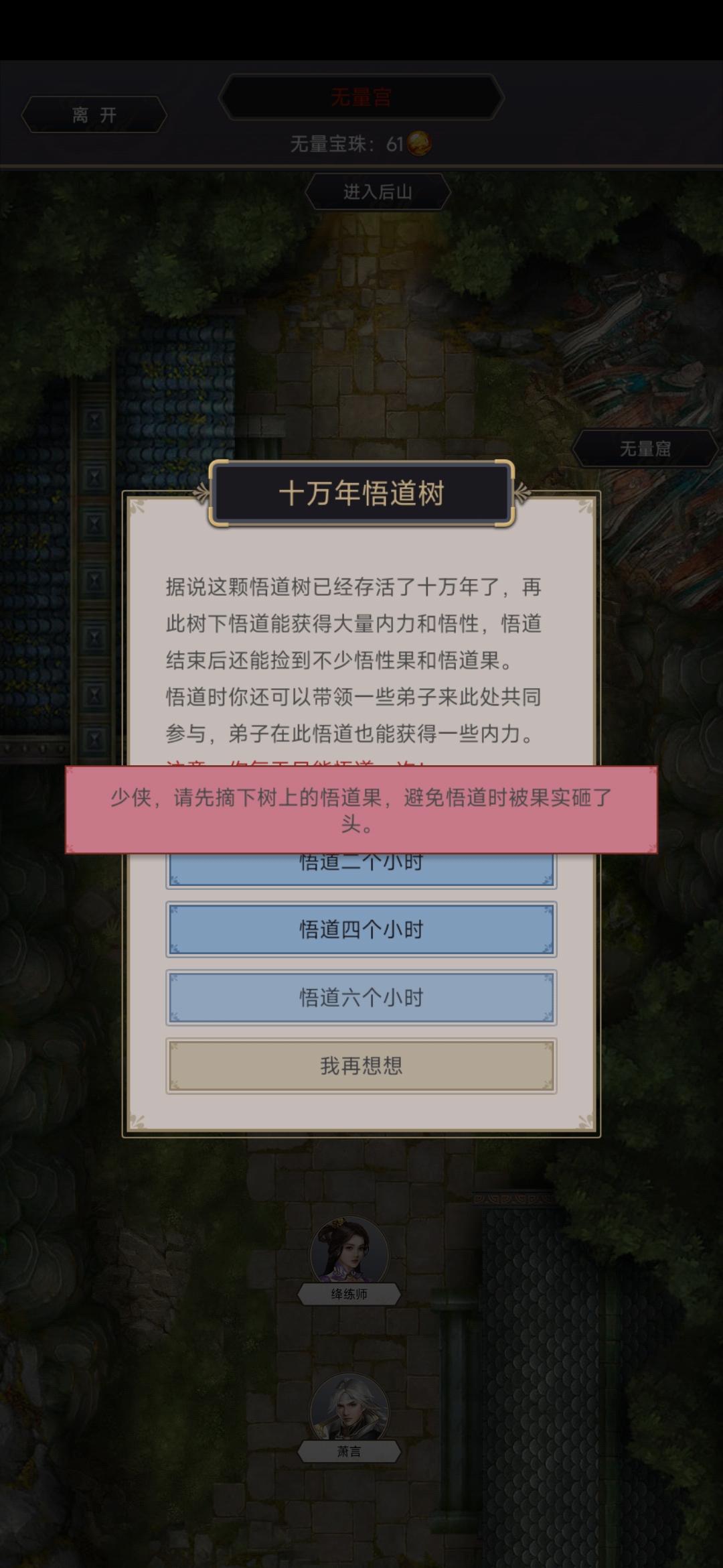 无良宫的悟道树悟不了道,显示未摘取悟道果,但是没有悟道果啊,是卡住了吗