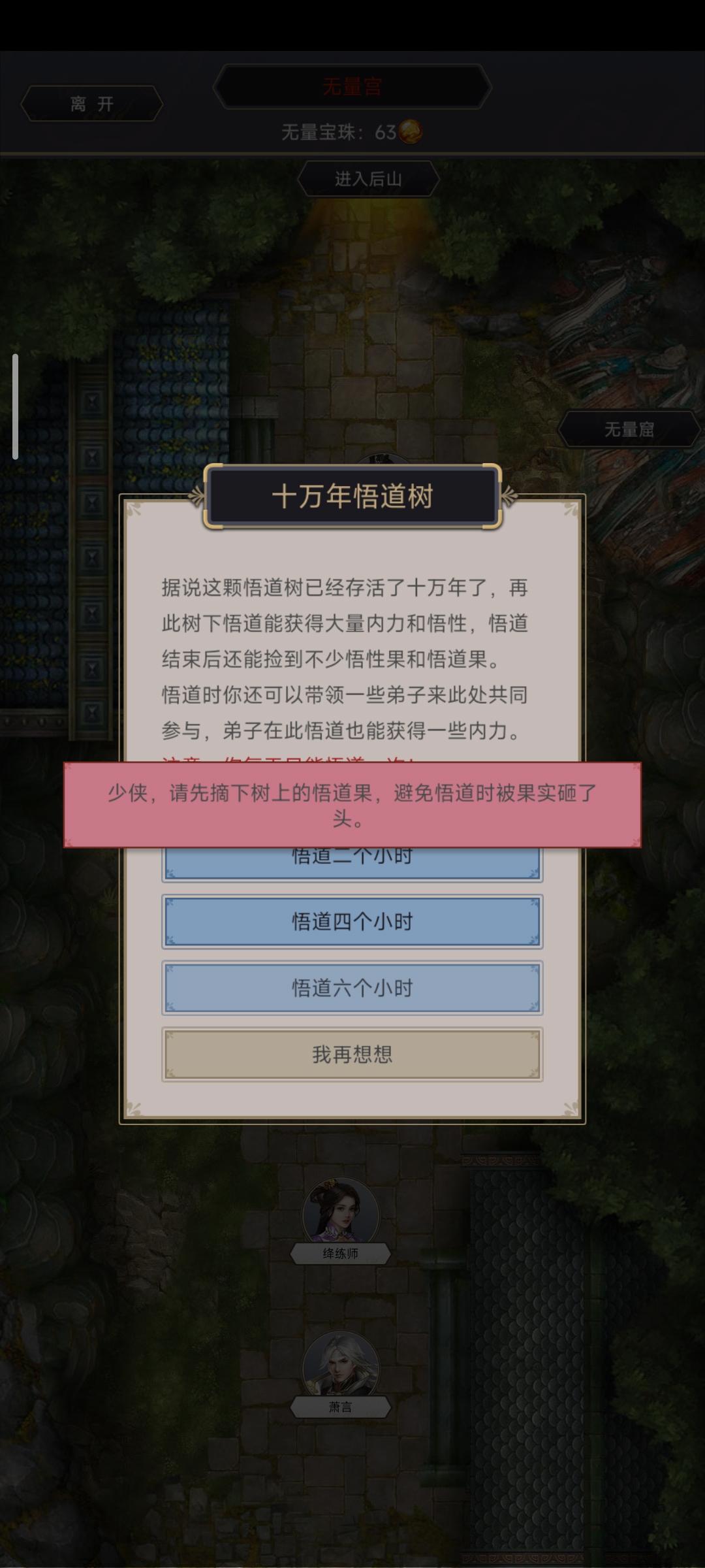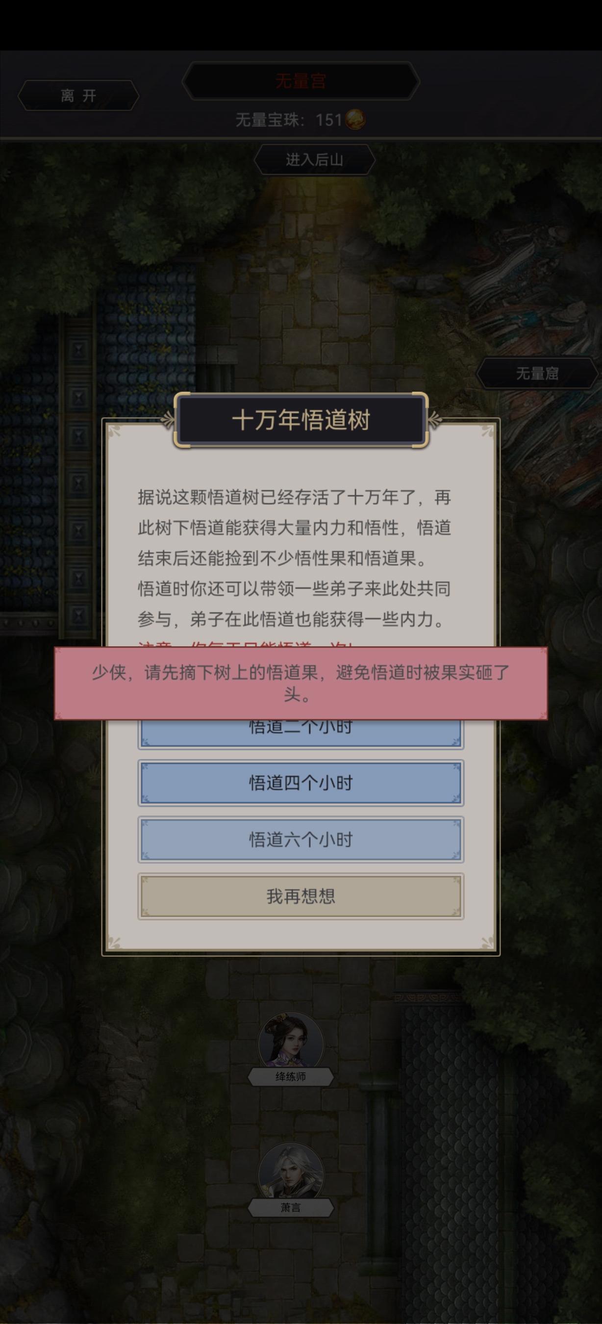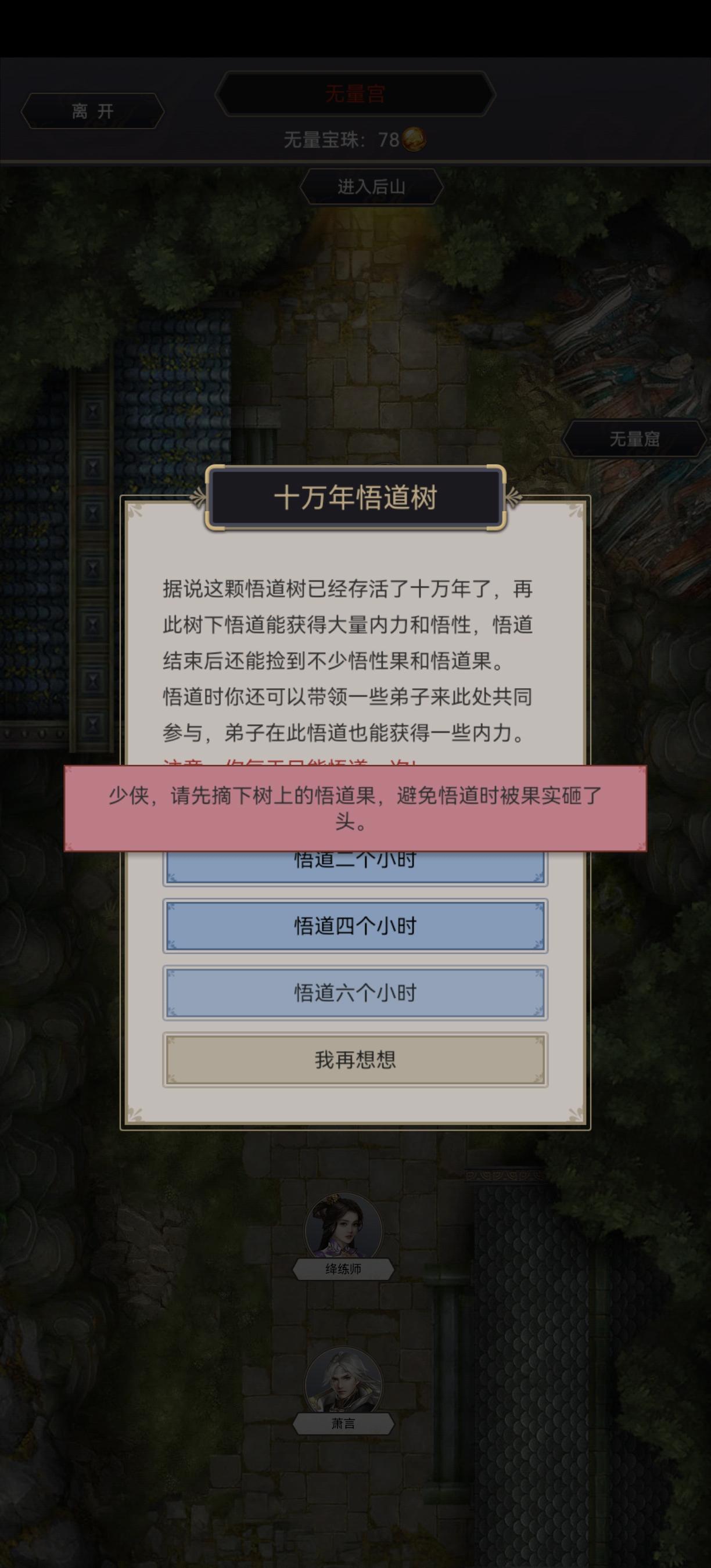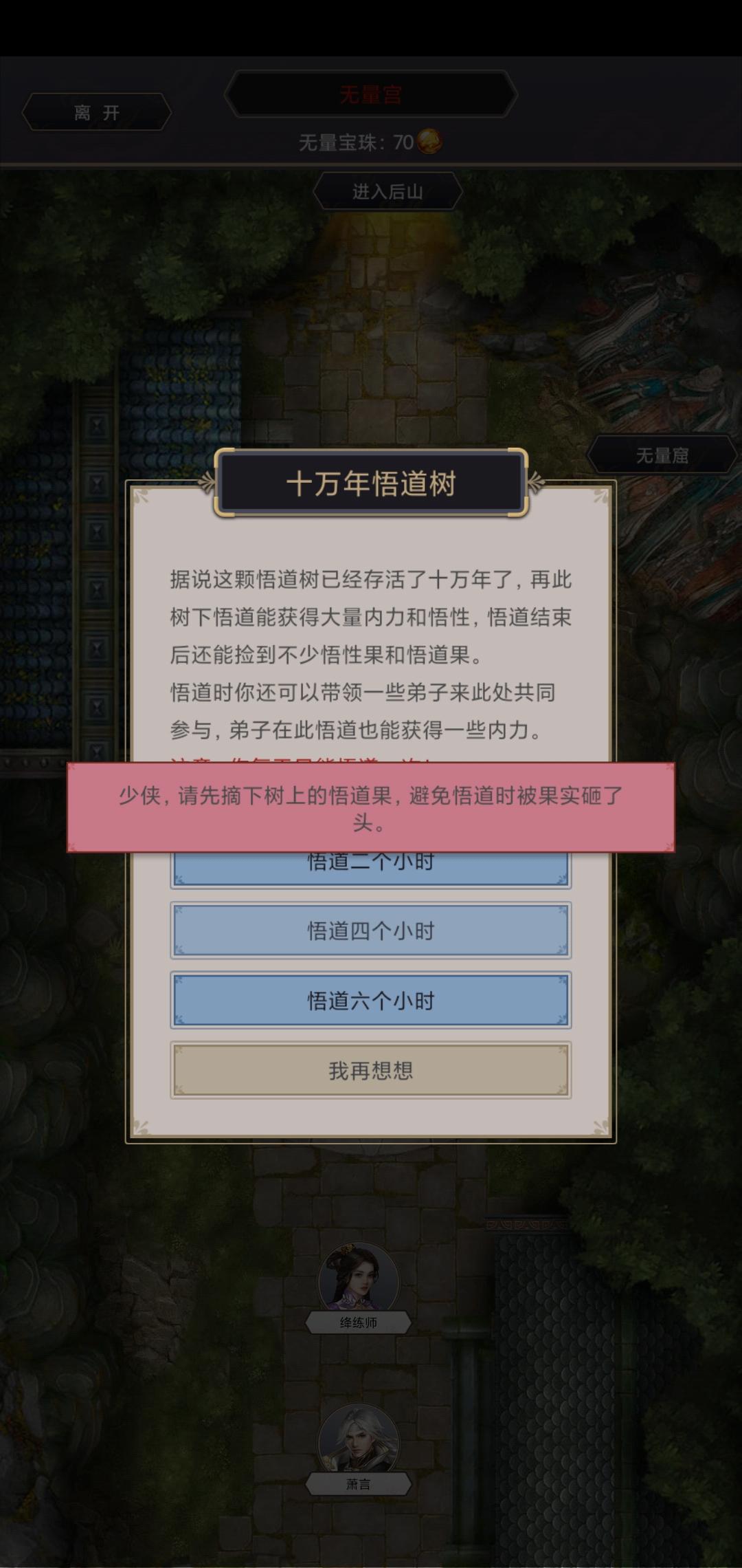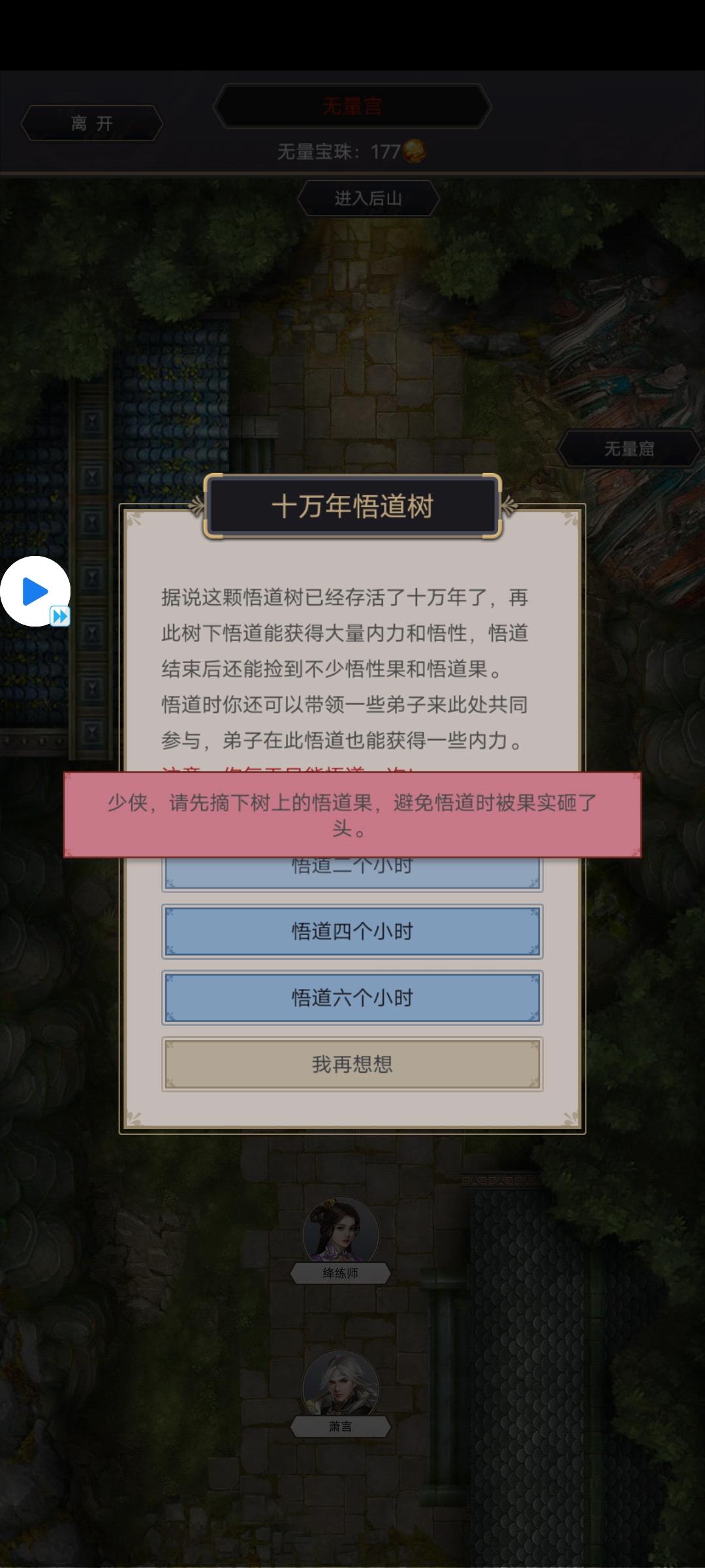 十万年悟道树无法悟道,提示摘果子,但是摘不了。