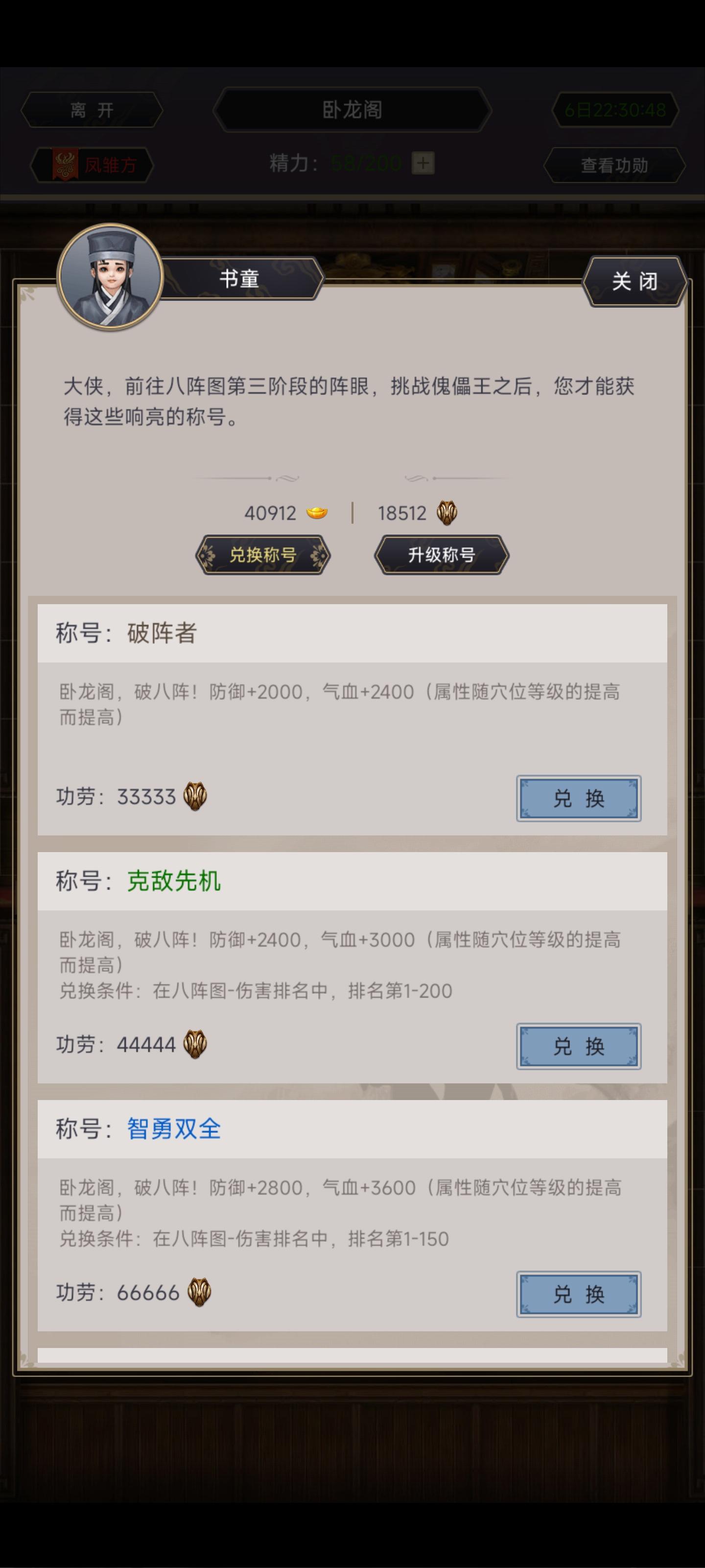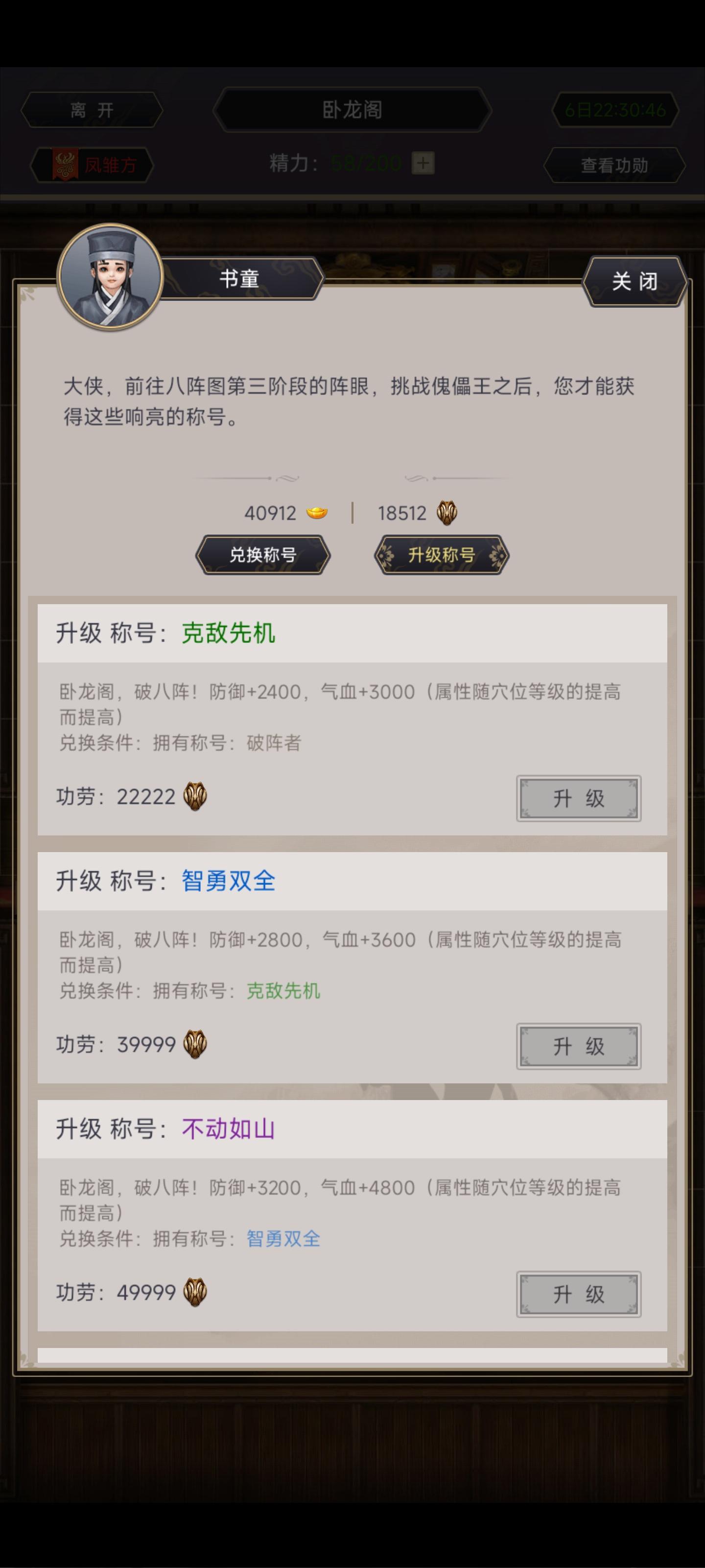 这个破阵称号升级是怎么个升级法?比如换了一个破阵者,升克敌先机是22222,直接升智勇双全是39999?那么有克敌先机再升智勇双全也是要39999吗?