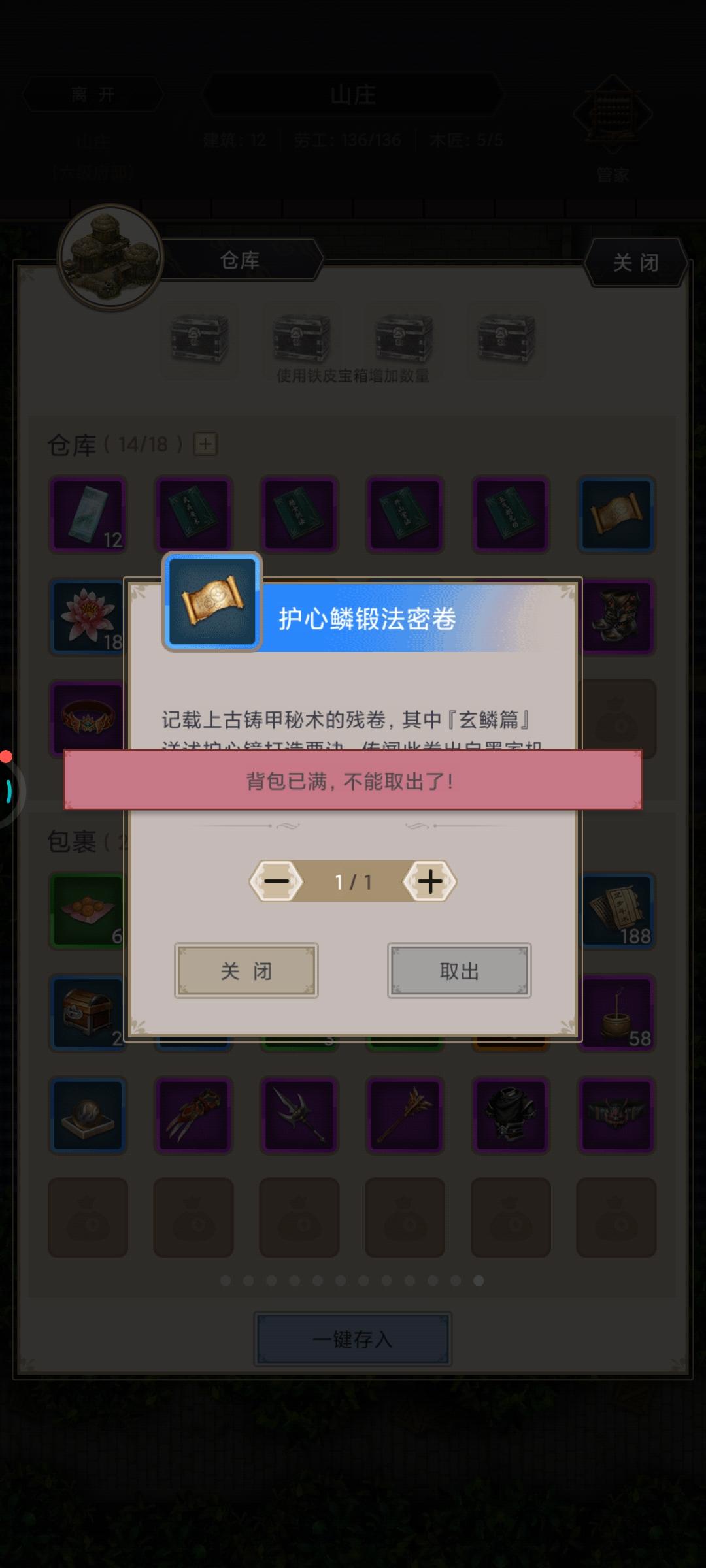护心镜出了好多个月了,当时买了图纸材料不够存到仓库,就再也拿不出来了,往出取就是背包已满拿不出来