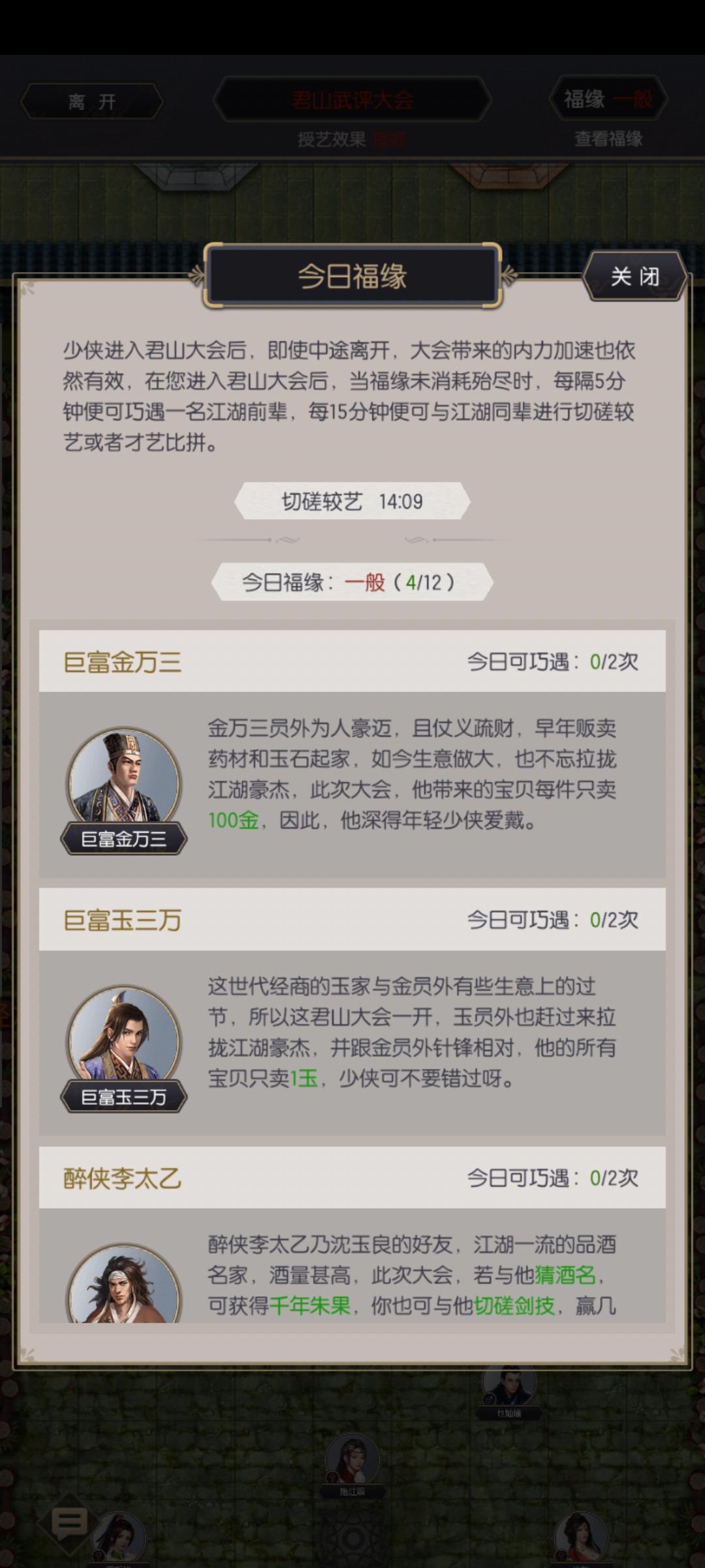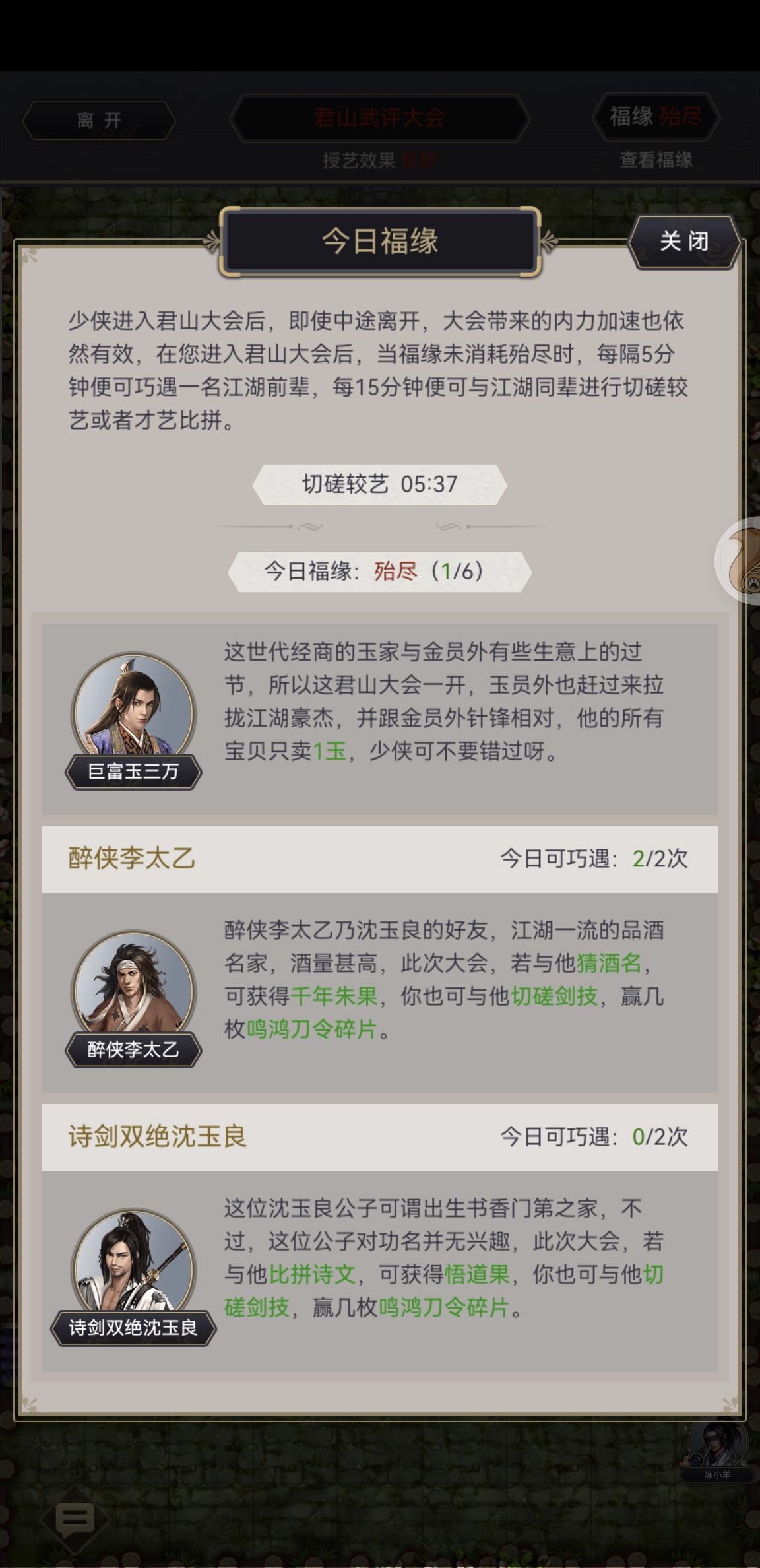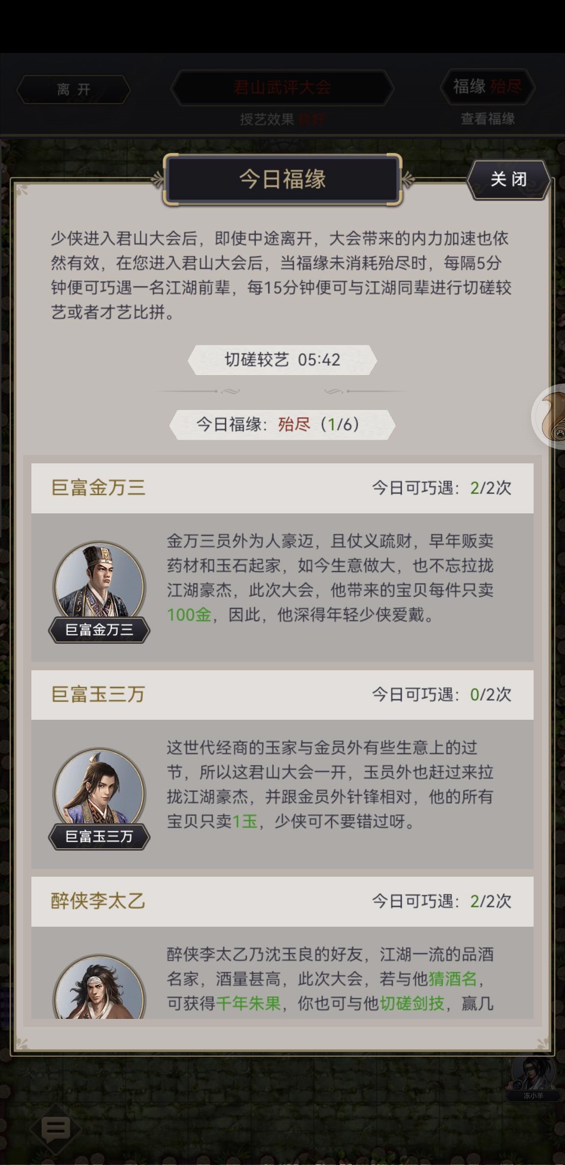君山大会每次都出BUG显示NPC来了,结果地图上根本没有显示,还扣了福缘次数。或者明明只遇见了四个NPC,结果扣了五次次数。