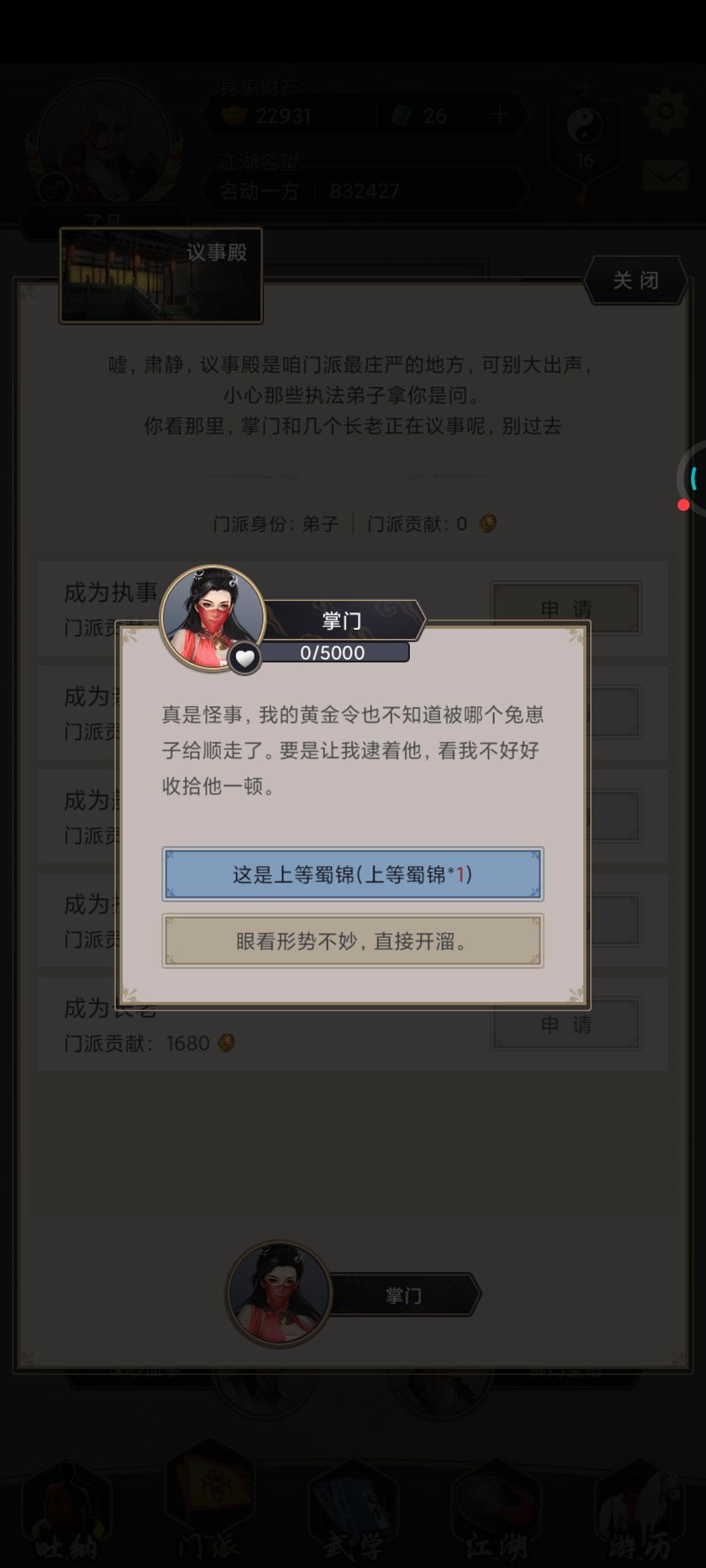 江湖风云令江湖风令,格子开到14,是不是不用再去六扇门了?我不记得是不是按顺序的,我第一个好像不是大理