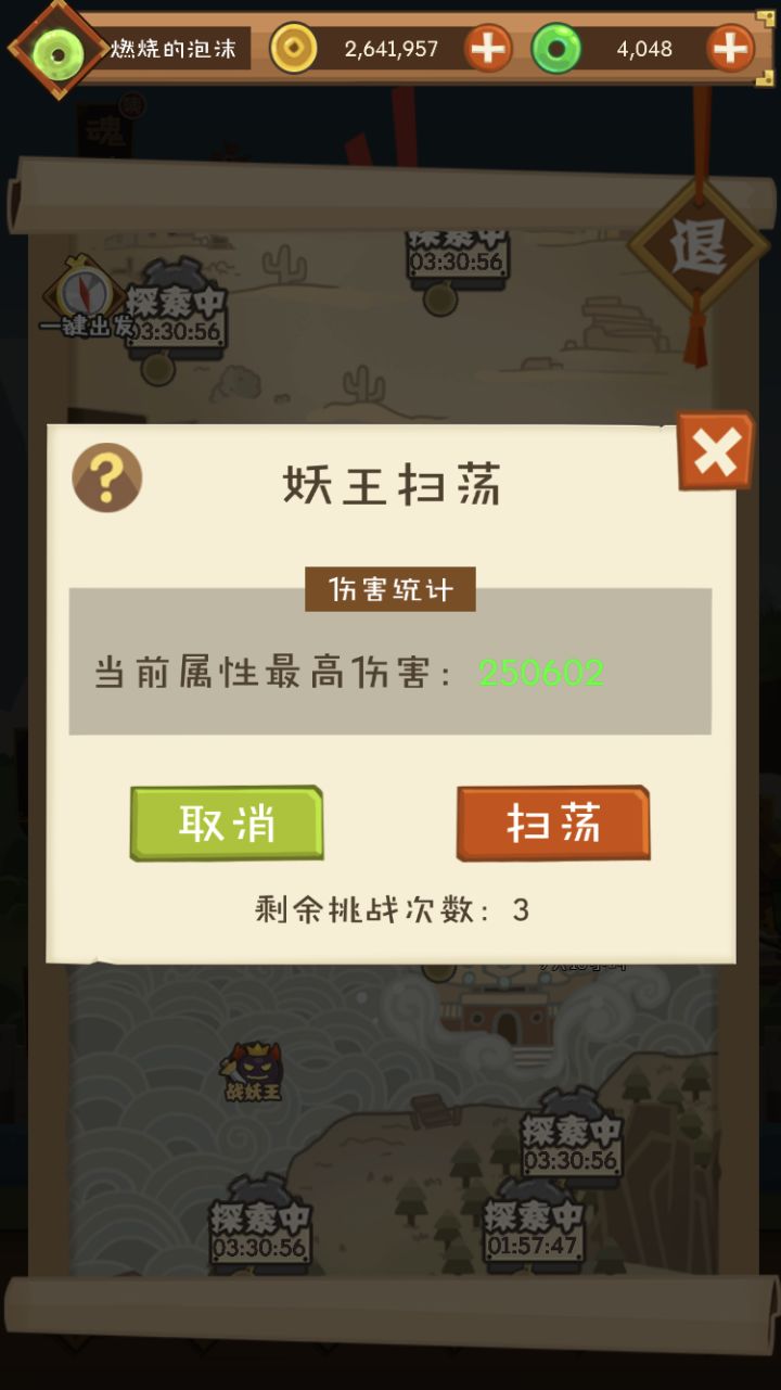 今天打妖王,木属性,五张倍卡和三张倍卡打一样的伤害……