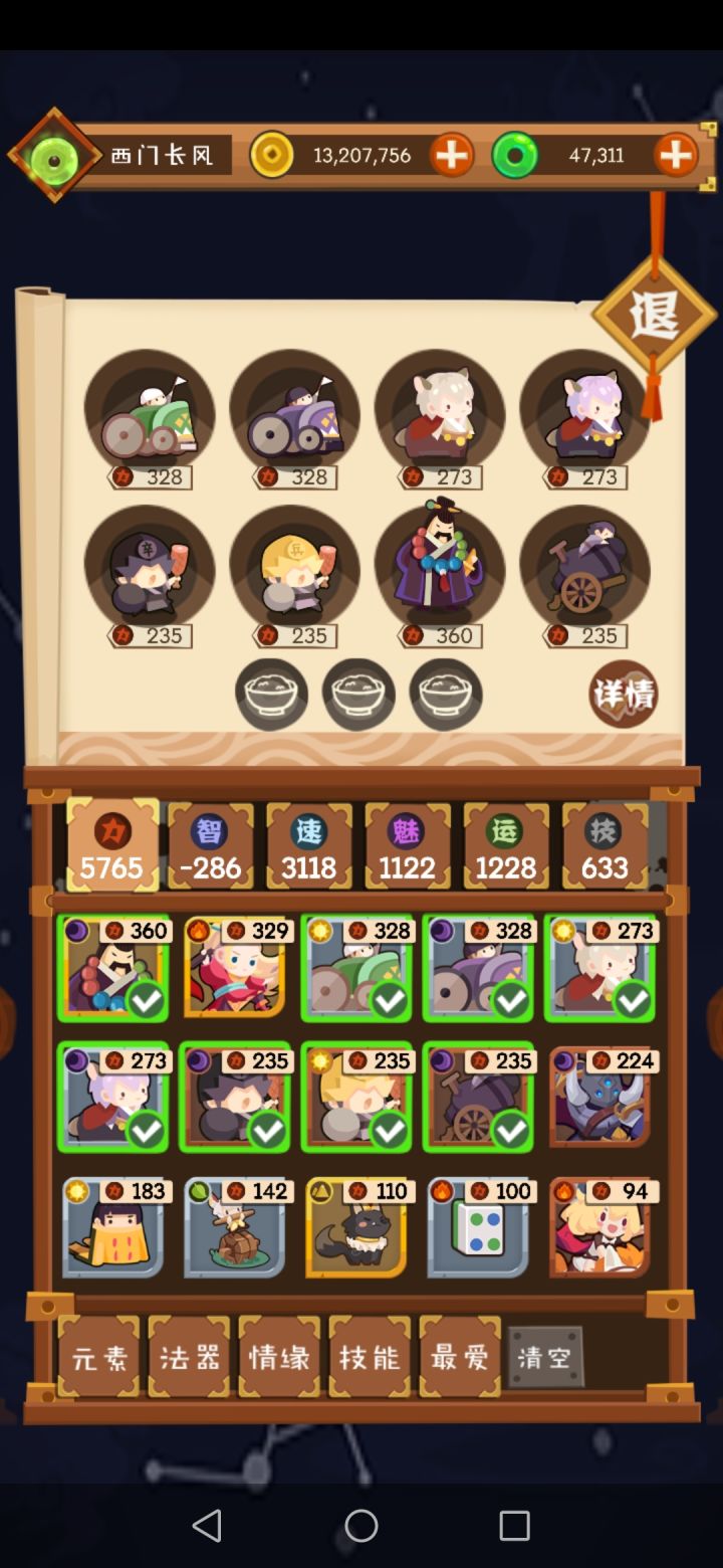 分享一个悟真塔的法器关,发现论坛很多真菌一级左右的半萌新都卡在这,我自己也是。大佬们的作业都是小手一点壮年一堆,对于我们这个阶段的来说叉大不足,往往可望而不可及,于是自己瞎鼓捣了一下,凑出了比较实用的方法。1.首先由于法器互斥,所以我们在选择上要选择象棋和国际象棋,这两类是没有法器互斥的2.关键象棋:力量双车 速度双马 魅力双士 运双兵技双炮3.队伍可以根据情况选择光队或者暗队,有光帅就光