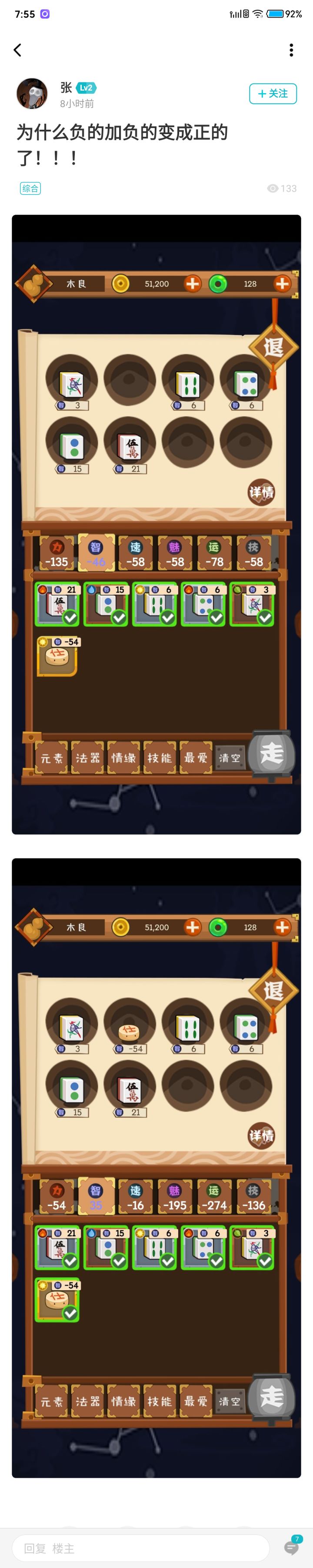 最近手帐上了首页,很多萌新入坑,加上新出的负数塔和负数周挑战的出现,以及双11半价麻将池的影响,最近对于麻将的讨论多了起来。麻将最大的特点是什么,当然是他的互斥技能。早上看到一个萌新的帖子,他疑惑为什么放了一个负数的象棋,总属性反而由负变正了。如下大多数人对于麻将的理解就是麻将越多属性越低,并没有一个详细的认知。我也翻过一些精品贴的帖子,里面有一个对于加成算法的讨论,麻将也涉及其中,但是并没有细