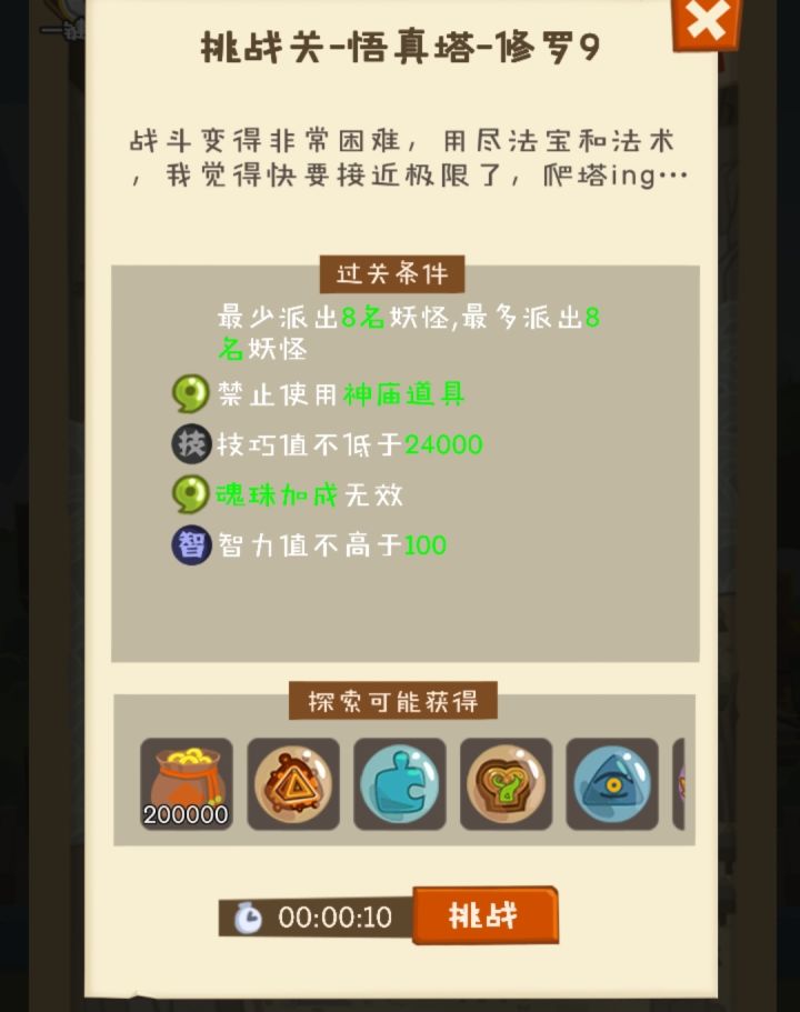 第一关:要求力量333第二关:要求速度666第三关:要求技巧1500第四关:要求智力1500 ,特性限定老人家第五关:要求运气2000,特性限定老人家第六关:全属性1000,特性限定老人家 50%掉活动怪每关奖励10万钱加100玉,可吃饭。附加天山童姥返老还童全过程。