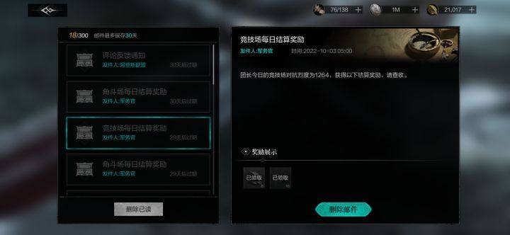 我今天的竞技场结算邮件没收到,后面会补发么!