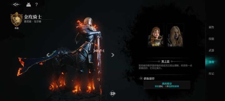 〔金玫骑士〕的设计从形象模型、背景故事、浸化形态还有技能及其图标都非常符合“骑士审美”,并且在剧情中几乎是为了守护公主而生:因为使命从小变“习男事”,之后也正是因为守护公主获得了“金玫”作为象征,并且在[南北战争]中从单纯的侍卫成为了一名独当一面的将领。