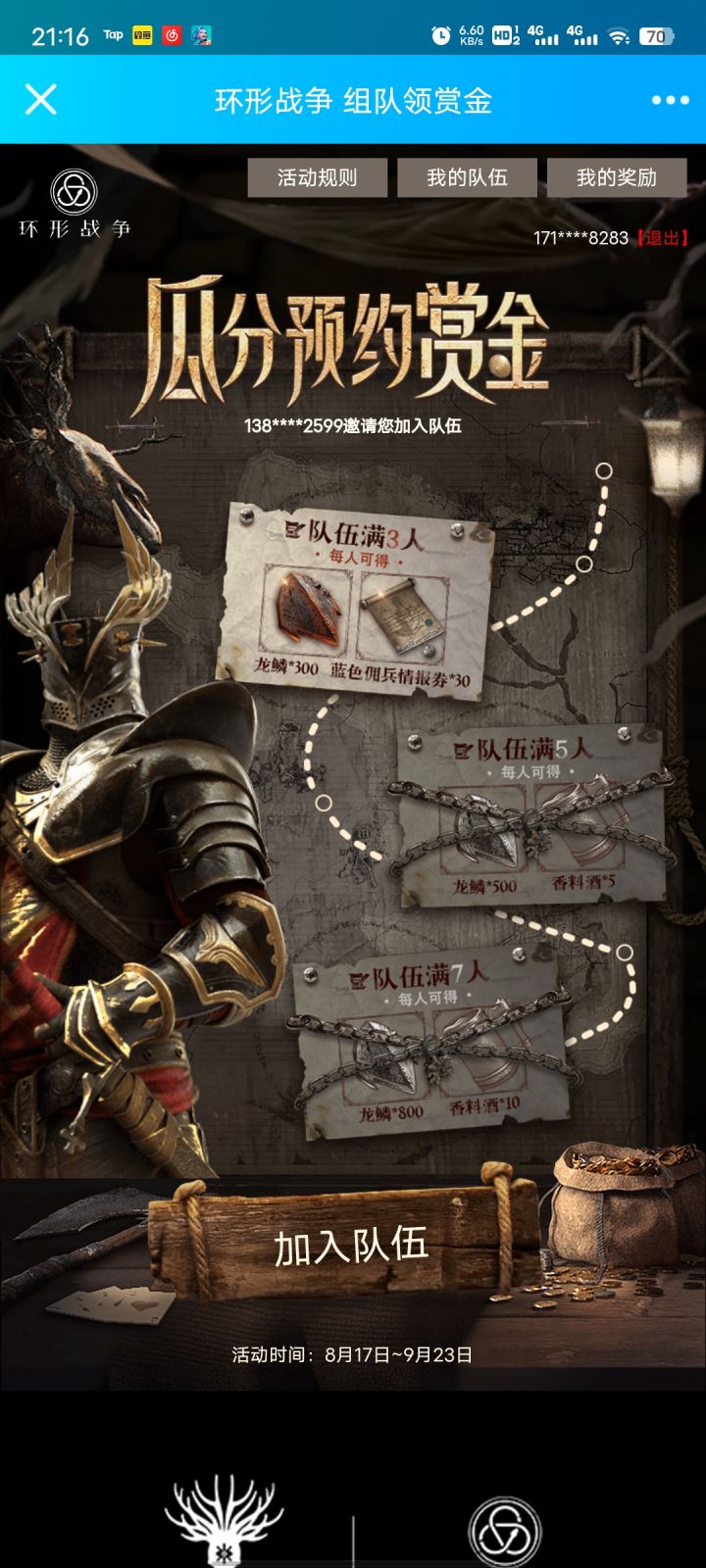组队领赏金,凑齐七个人之后,所有人都能领取所有的奖励的啦我已预约黑暗幻想战棋手游《环形战争》,加入我的佣兵团,100%领佣兵大礼包!https://hd.indragame.com/annulus/invite/?team_mark=0omRy83X46dBGXe79jAkGxvD0omRy83X46dBGXe79jAkGxvD