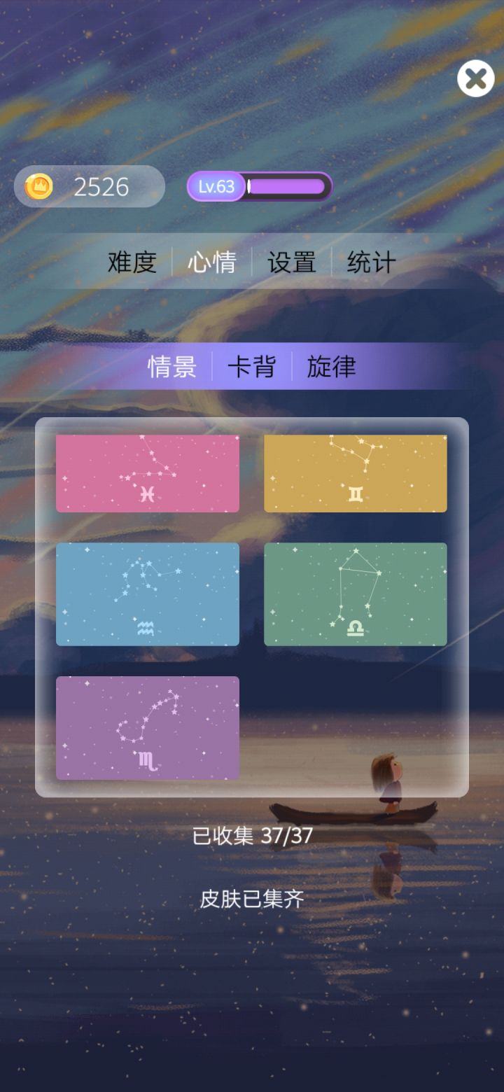 所有情景我都集齐了,卡背好像只剩几个(忘截图了。。。。),金币等级全部没了。你们能保留个别原有卡背,为什么不能保留原有情景?是十二星座不够二次元吗?原先的几个卡背都很有意境,有点中国风的感觉,我特别喜欢,有游船来着。现在更新完变得更花哨了,更潮流了,原有的情怀也没了,玩了好几年,就这样啪一下没了。可笑的是统计数据没有清空,于是我顶着一个一级号,统计数据玩过一千多场。哈哈!我手贱更新什么啊,就