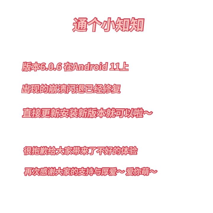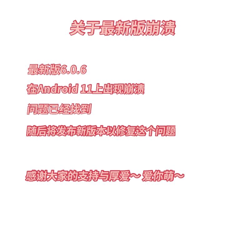 【公告】通个小知知版本6.0.6在Android 11 上崩溃闪退的问题已经修复现在直接更新安装zui新版本就好了~~很抱歉给大家带来不好的体验求饶过狗命~再次感谢大家的支持与厚爱~ 笔芯~