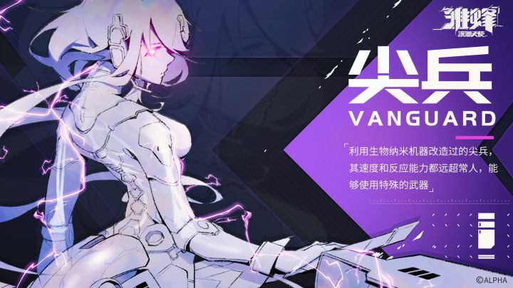 //你好尖兵,欢迎登陆NPSA档案库//解禁资料#序列001——尖兵//爱丽丝解码资料中......//尖兵(Vanguard)[附录①]尖兵的训练以及改造都需要消耗极大的一笔资金,不仅如此,成为尖兵还需要极其严苛的身体条件,以及最重要的——自体不排斥生物纳米机器。[附录②]第一代尖兵的研究,从上世纪70年代延续至今。从初代的单项精准改造,到如今的整体替换型改造,尖兵的能力在不断上升,但