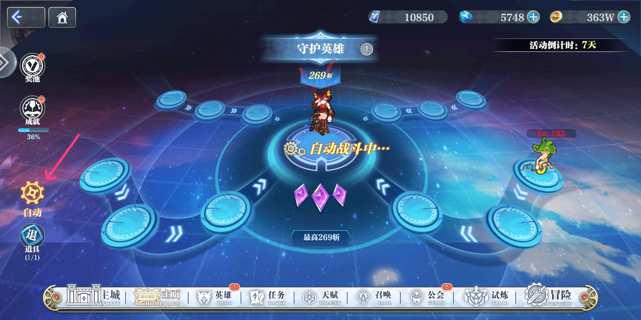 守护英雄自动战斗功能点击以后,会卡死