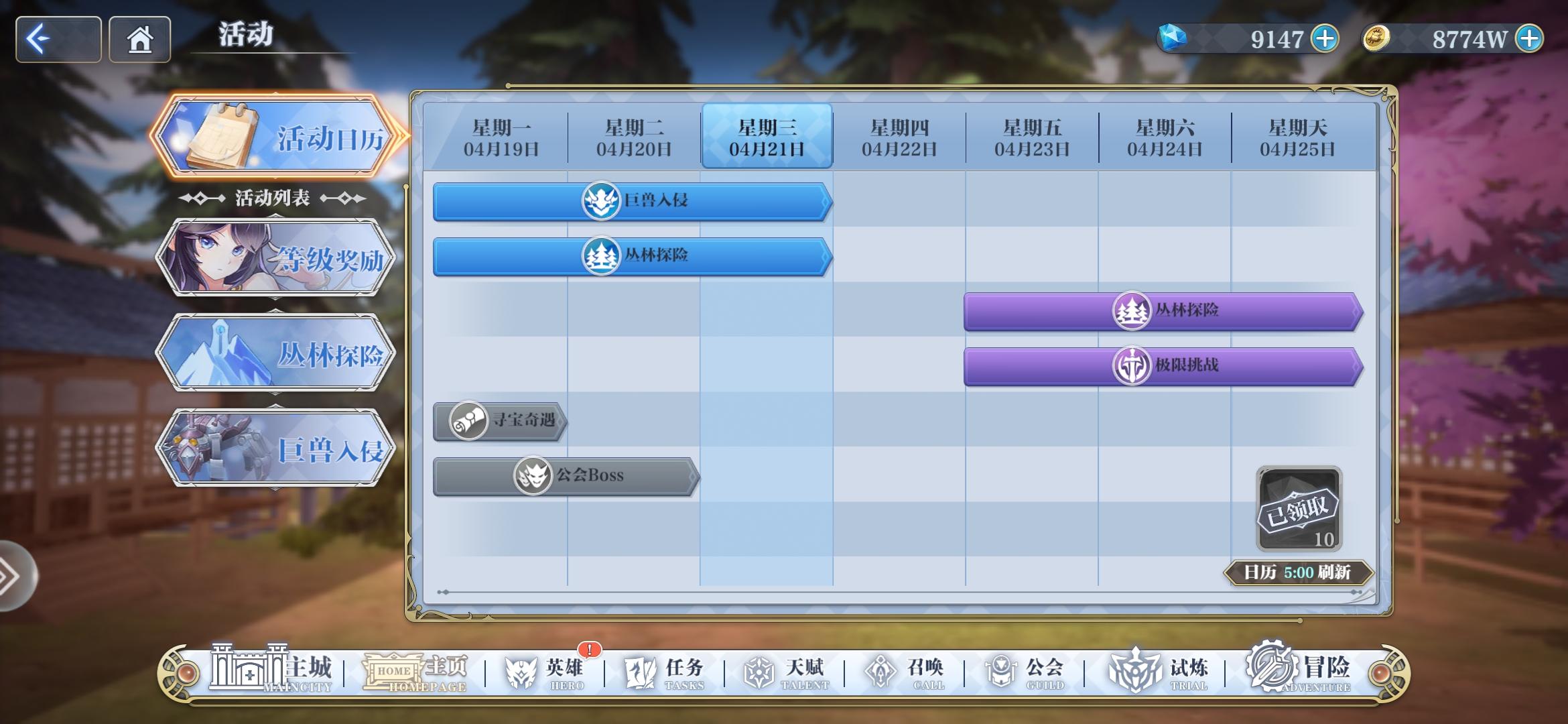 我今天早上打了5次巨兽,明明上阵了小米 但是收益不翻倍