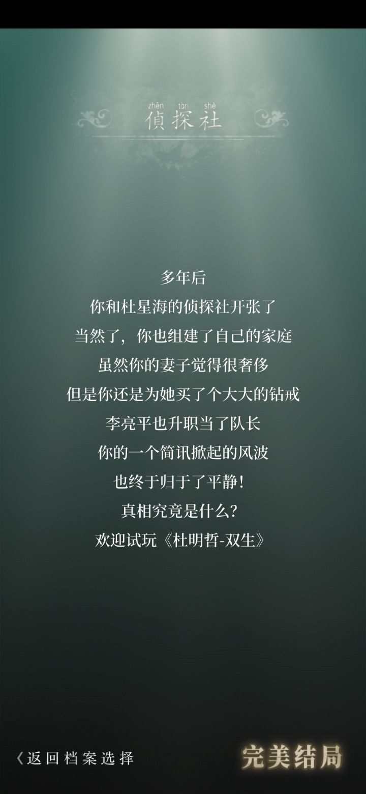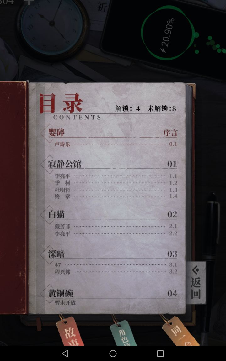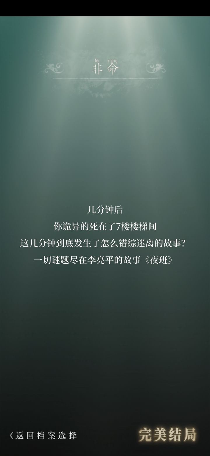 开局先晒一下hhPS:【】里为故事树上的节点,可以直接点击节点跳转来重复刷结局,有些不重要的选项不唯一,可以随意先来完美结局,其他分结局在后面【h山的封锁】工作群里——别说了,工作吧【季柯的求助】事有蹊跷劝他挽回——你发现萱萱哪里不对了吗——建国后不许成精——电视剧看多了——没手机之前怎么办——你是怎么知道的——日记里面写了什么——这事不简单【七具骷髅】工作群里——选项随意选(可以