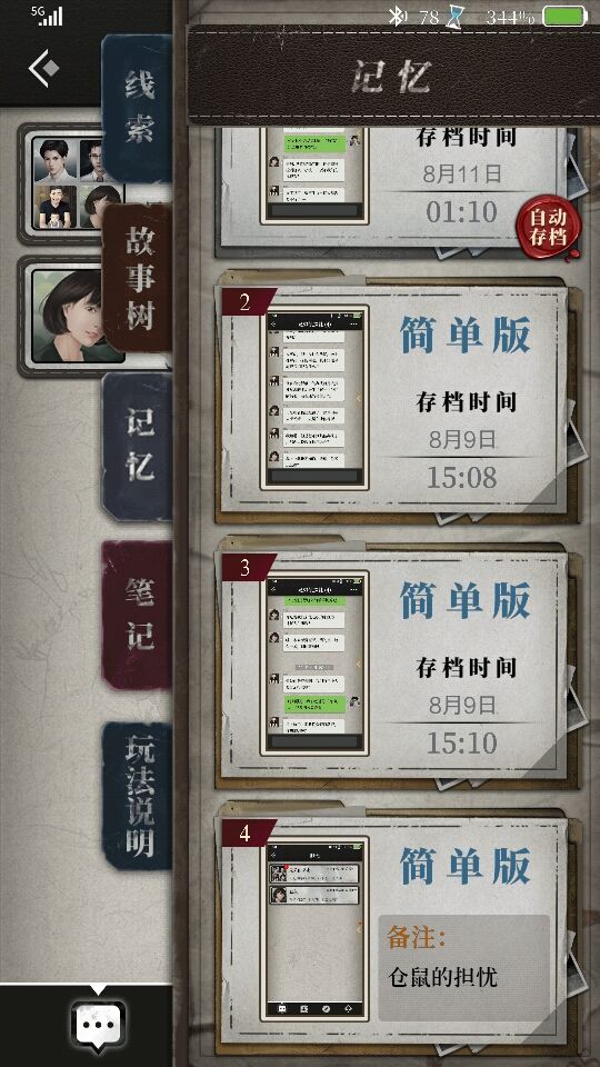 一下都是楼楼呕心沥血总结出来的一些经验,你就看一眼,点个赞再走嘛~(均为个人建议,你如果有更好的办法我们也可以留言分享~)指路深暗程兴邦攻略👉1、关于记忆 (这一点方便刷图,因为一次过肯定看不懂全部剧情)你可以选择把几个大节点(系统提示)先存档,挨着存,并且记在纸上或者手机记事本上(还要记你当时的选项),存满之后就从第二个档位开始覆盖(自存的第一个档一定留下!因为读自存档需要20电,但你跳节点