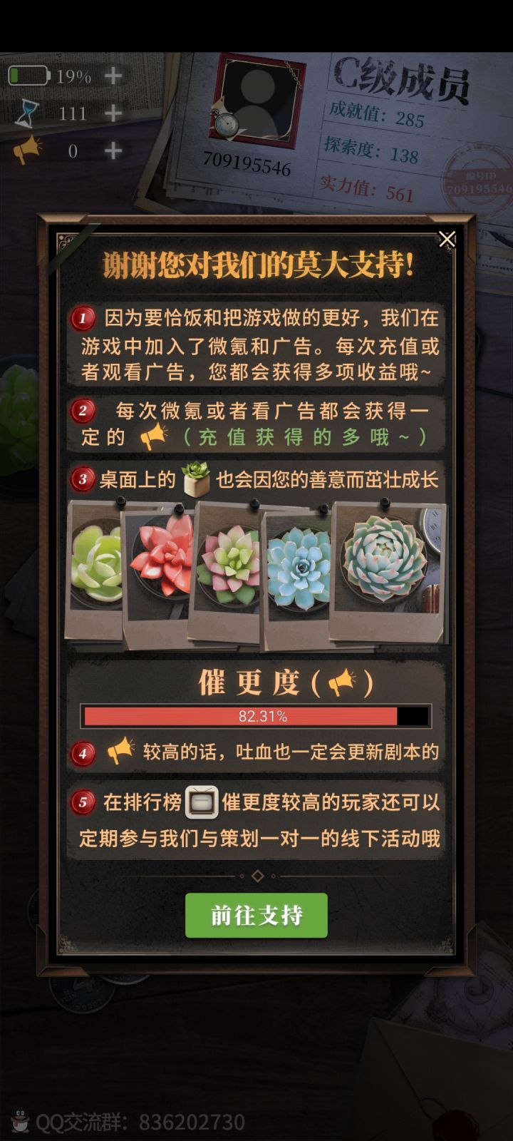 我算是以前玩过一点,但是现在再玩感觉和以前差不太多但是当时是可以通过看广告来恢复电量和沙漏现在就完全不可以了,因为没有新广告,但是官方也没发个通知,跟玩家说一下(你不接广告,不恰饭的嘛,官方?就只靠氪金玩家吗?)然后现在,之前官方承诺的更新内容(半截指骨,黄铜碗)一点消息也没有。当然也有可能是正在制作中,但多少给一个准确的通知啊我还发现,评论区有小伙伴提出问题,并且能得到官方回复,还是0