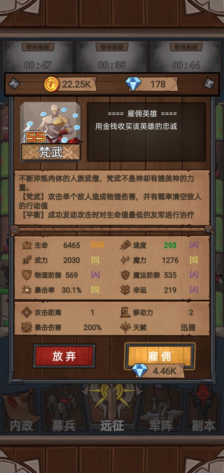 bug幽僻小径无法下拉关卡,最多点到15关,而第二页是31关开始无法解锁,中间差了15关。分屏得在加载好前分好,不然就无法点击,切屏或后台一样,每次都得重启。。融合升级几率太低,基本上就只有靠雇佣,高级的又只能砖石雇佣。而广告砖石收益又太低,在线收益砖少的可怜,离线更几乎没有。雇佣一个高级的要几千砖,还要洗属性、洗技能、配装备,弄一个至少都要看几十个广告,还要弄十八个。。。