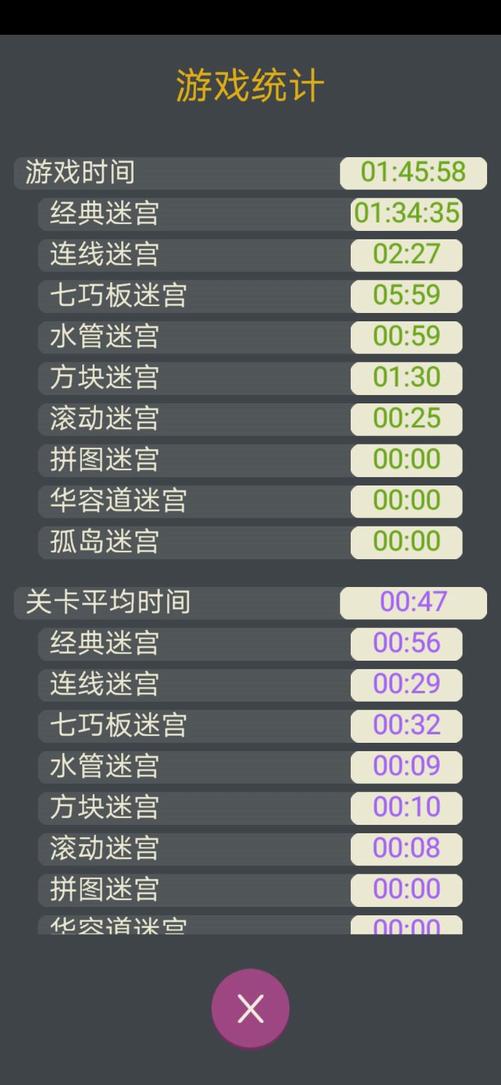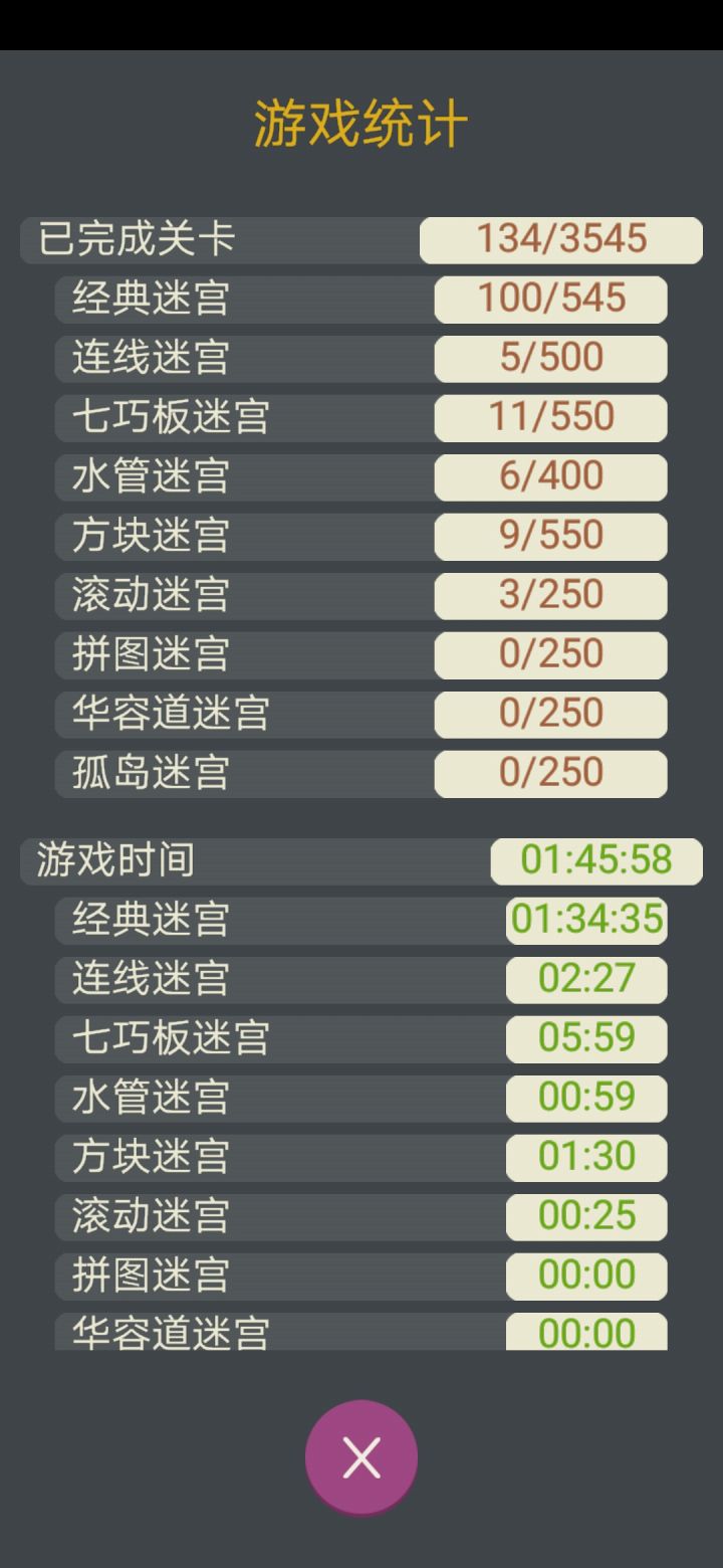 1小时27分通关经典模式。 不知道广告的秒数算不算在里面,游戏本身的迷宫,从1-100我没觉得迷宫有任何难度基本就是一眼过。哦对了 第98关和92关是重复的,只是一个往左一个往右。路线一模一样小破戏还挺糊弄人哈哈哈哈哈。 P1是我把98关给翻转了一下得到的图片,P2是正常的92关。我个人不爱玩那些花里胡哨的模式,所以没办法提出其他模式有关的意见,经典yyds!