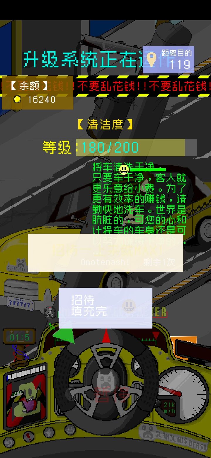 我遇见了一个超级骚的bug,送客的时候别对话,挂后台再打开,乘客不会下车,还可以接客,下一个客人上车以后打不了方向盘,还会挤在一起,重复这个流程出租车上会越来越多人,我已经挤了两人三机一坨了 不愧是未来的出租车,这非常合理