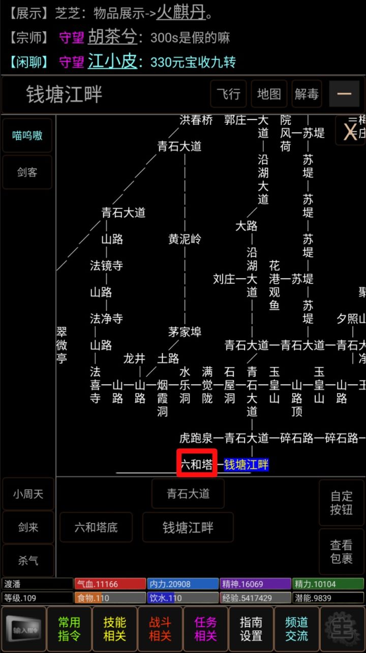首先飞杭州六和塔六合塔总共13层每层有1-2个怪打到第十三层就会看见乾隆皇帝和陈家洛输入指令kneel向乾隆请安,这时候陈家洛就是主动攻击你,打败他之后乾隆皇帝就会说你救驾有功赏你一w经验六合塔的怪的技能等级是50-250级,陈家洛技能等级:萌新最好跟大佬组队打,不然翻车了就是一个悲伤的故事了。这个副本经验只能领取一次,二刷不会获得任何奖励