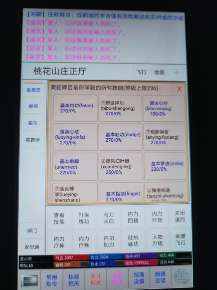 以前我一直不知道打听消息有什么用…今天突然试了一下先打听消息,会告诉你有运送什么的消息,比如运送香料,问你有没有兴趣再ask xiao er(或者张天师zhang) about 运送香料,他会告诉你送货的消息,a有香料要送给b然后再问ask xiao er about a(汉字),他会告诉你a在哪(比如华山附近),或者a被杀了这样能获得送货的消息,的确很好,即使聊天频道很吵也不怕送货消息刷