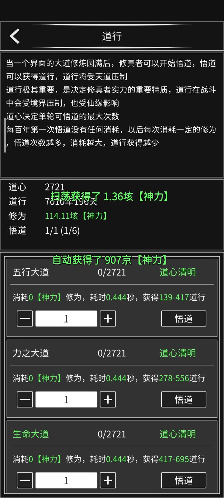 道心,道行,福地这些东西就不能倒序排吗?每次都要划拉到最下面
