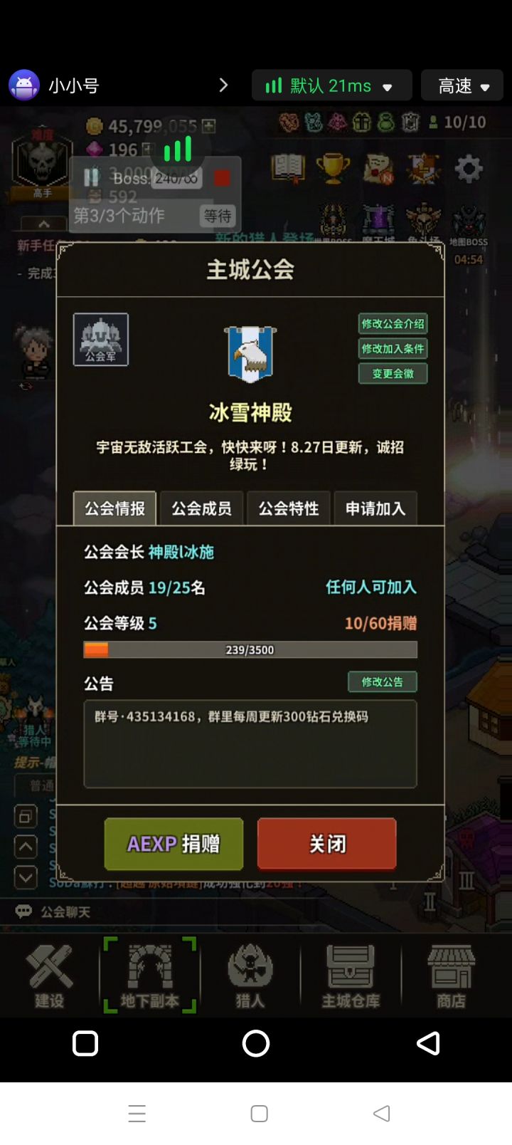 只收绿玩,主会1-2个位置收混沌20以上的,混沌20以下的可以考虑去冰雪神庭,后面2个公会建设中,加公会游戏加群联系,备注加公会,只收绿玩,科技修改请绕道,其他人勿加公会!#猎魔村物语