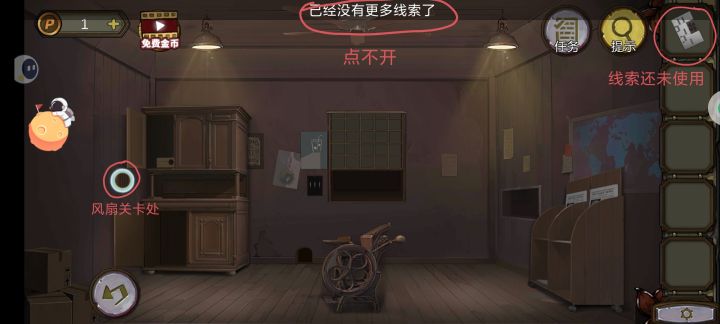 我服了呀,这是想干嘛,点了半天都是说没有线索了,搞什么啊,还能不能让人玩了,况且那个风扇我都还没整呢,说啥没线索了,搞毛线啊,我需要一个满意的回答[表情_生气][表情_生气][表情_生气]#密室逃脱绝境系列10寻梦大作战