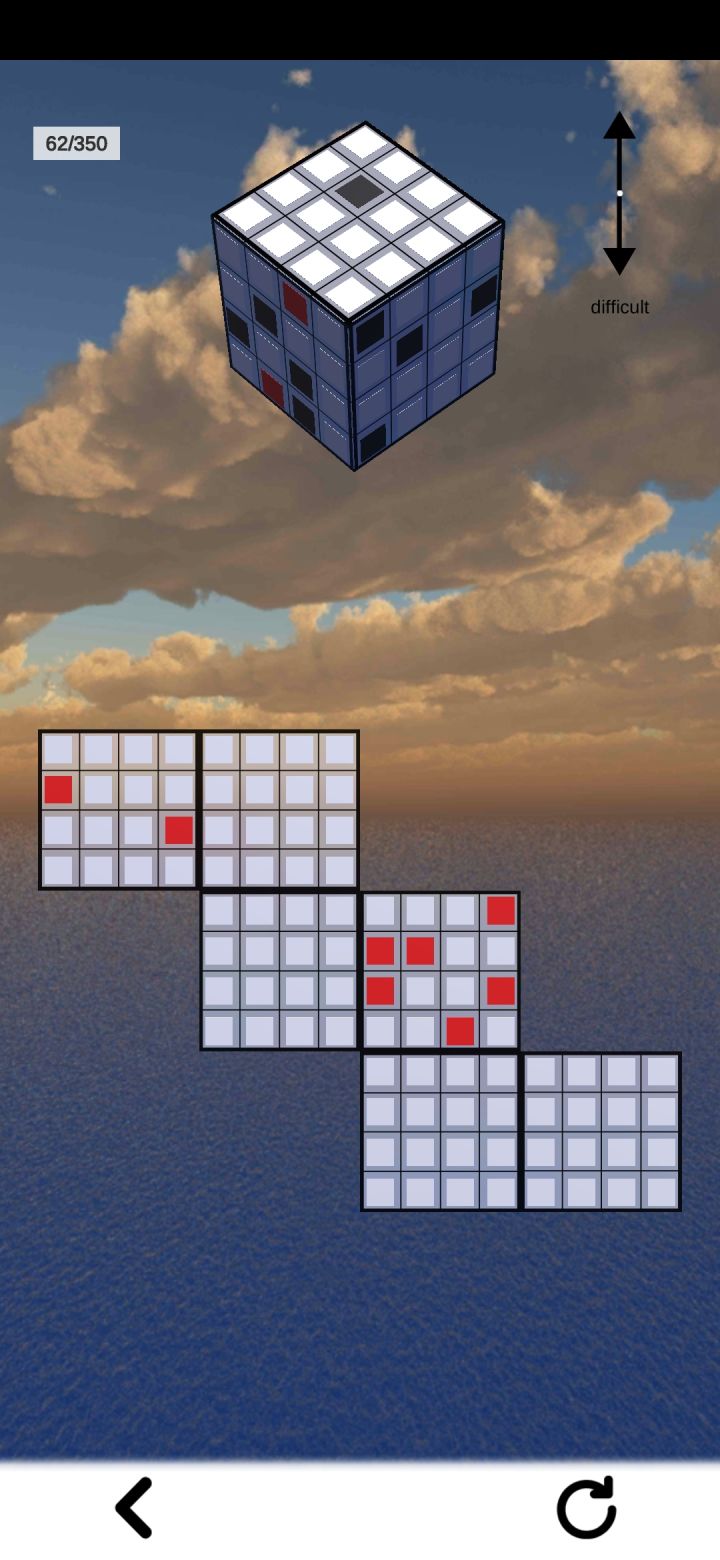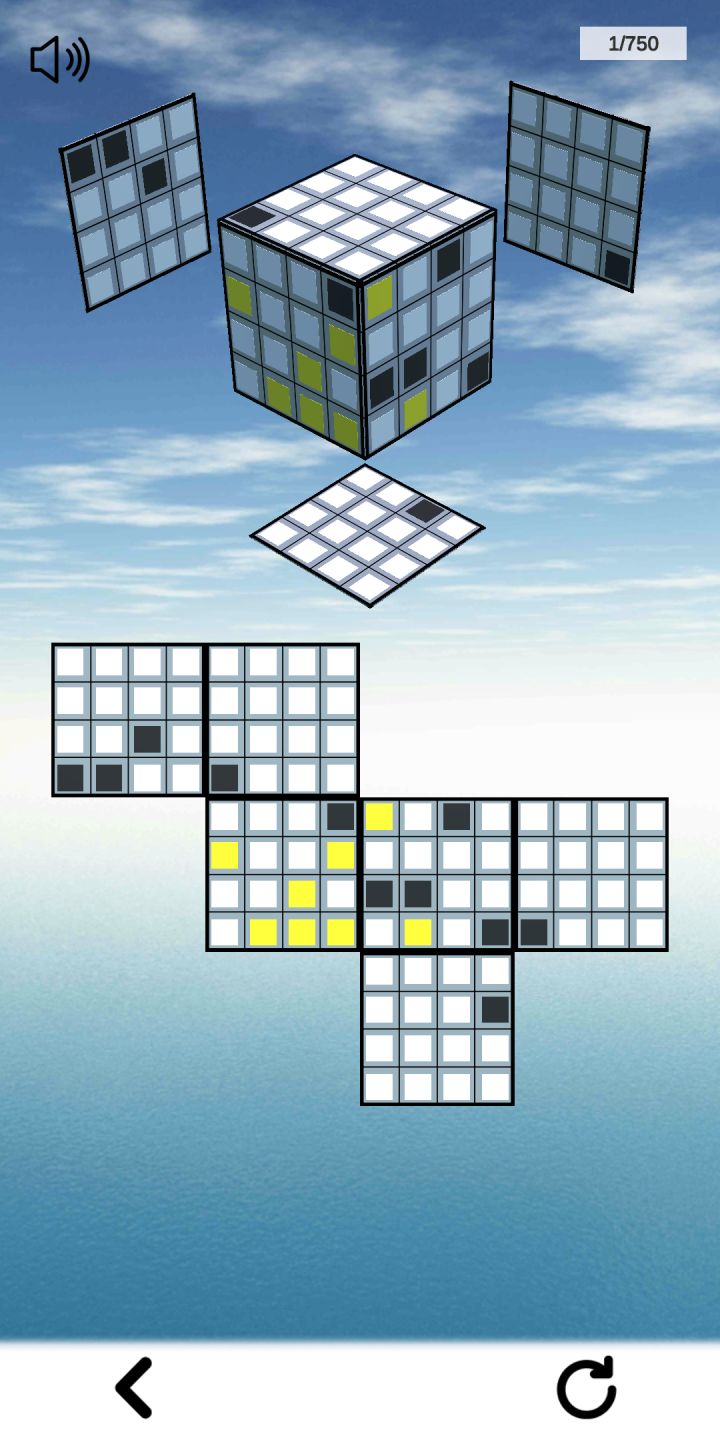 建议增加点难度,毕竟32关后就都一个样,平均20s就可以过一关,单纯量的增加会让这款游戏变得无趣。建议在后期可以让方块变成透明不可旋转的,加几面镜子,或者由展开图推立体图之类的。