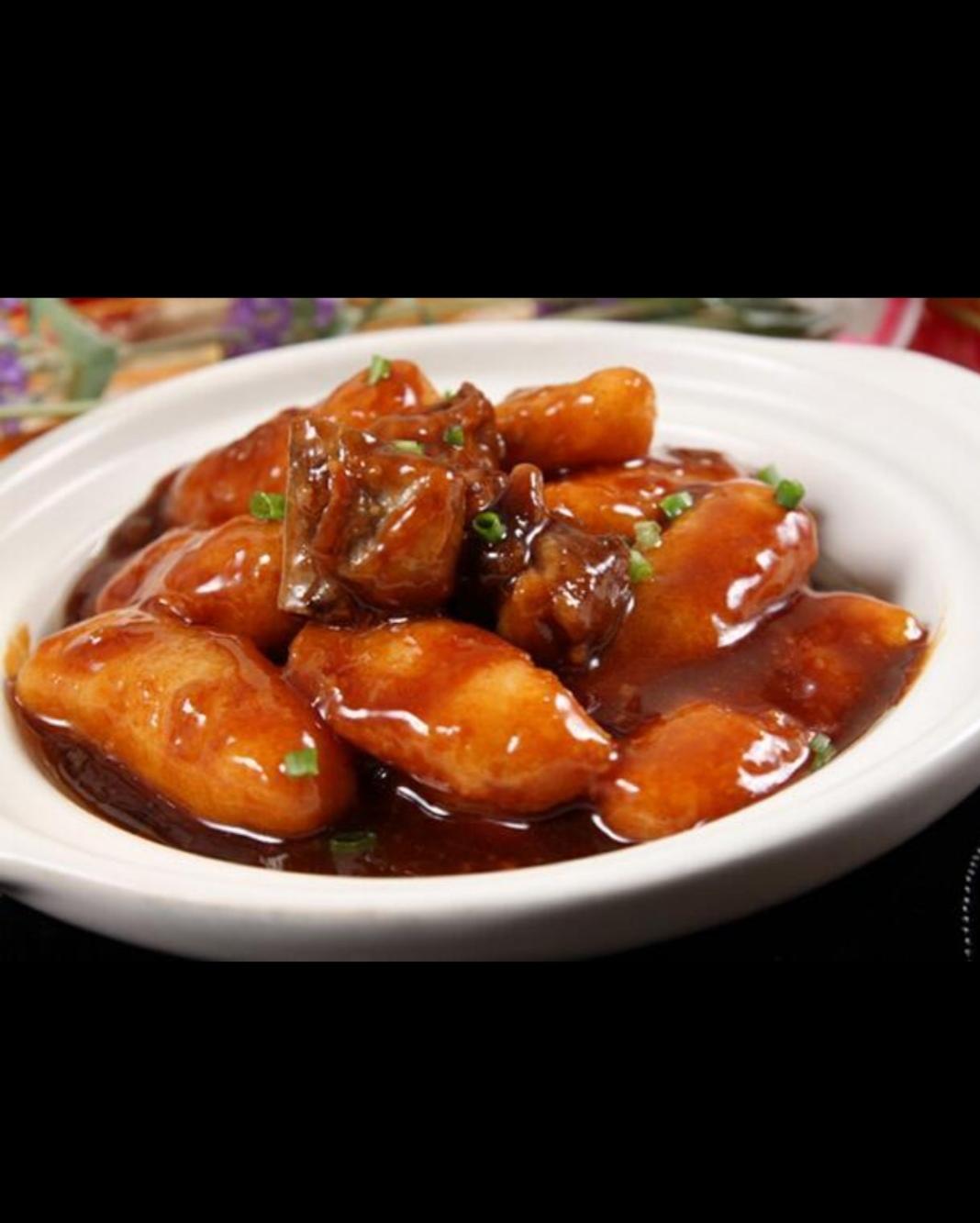 排骨年糕是上海地区一种经济实惠、独具风味的汉族小吃,已有50多年历史,是将面粉、菱粉、五香粉、鸡蛋放在一起搅成浸裹在排骨表面,放入油中氽熟的一道美食。其既有排骨的浓香,又有年糕的软糯酥脆,十分可口。排骨色泽金黄,表面酥脆,肉质鲜嫩,入口糯中发香,略有甜辣味,鲜嫩适口。排骨年糕的两大主料——排骨和年糕都有很高的营养价值,可为幼儿和老人提供钙质,具有滋阴润燥、益精补血的功效。