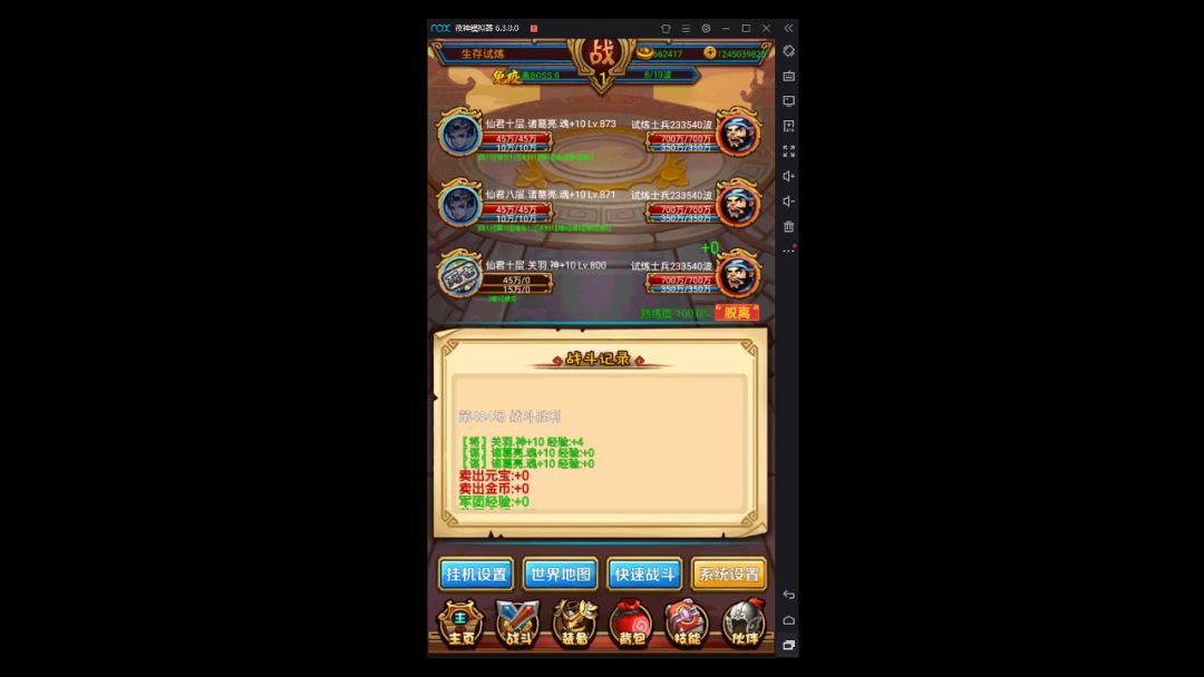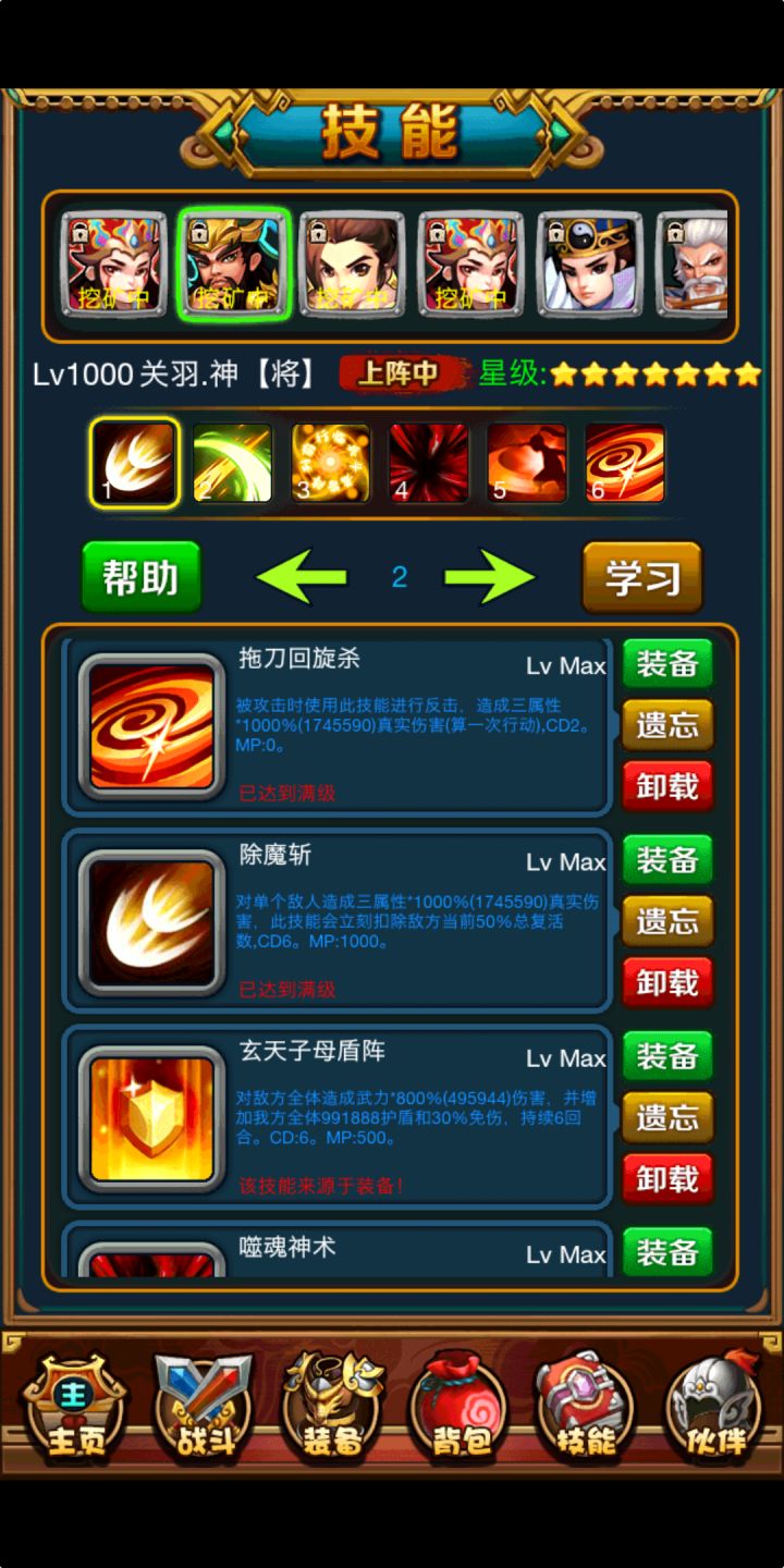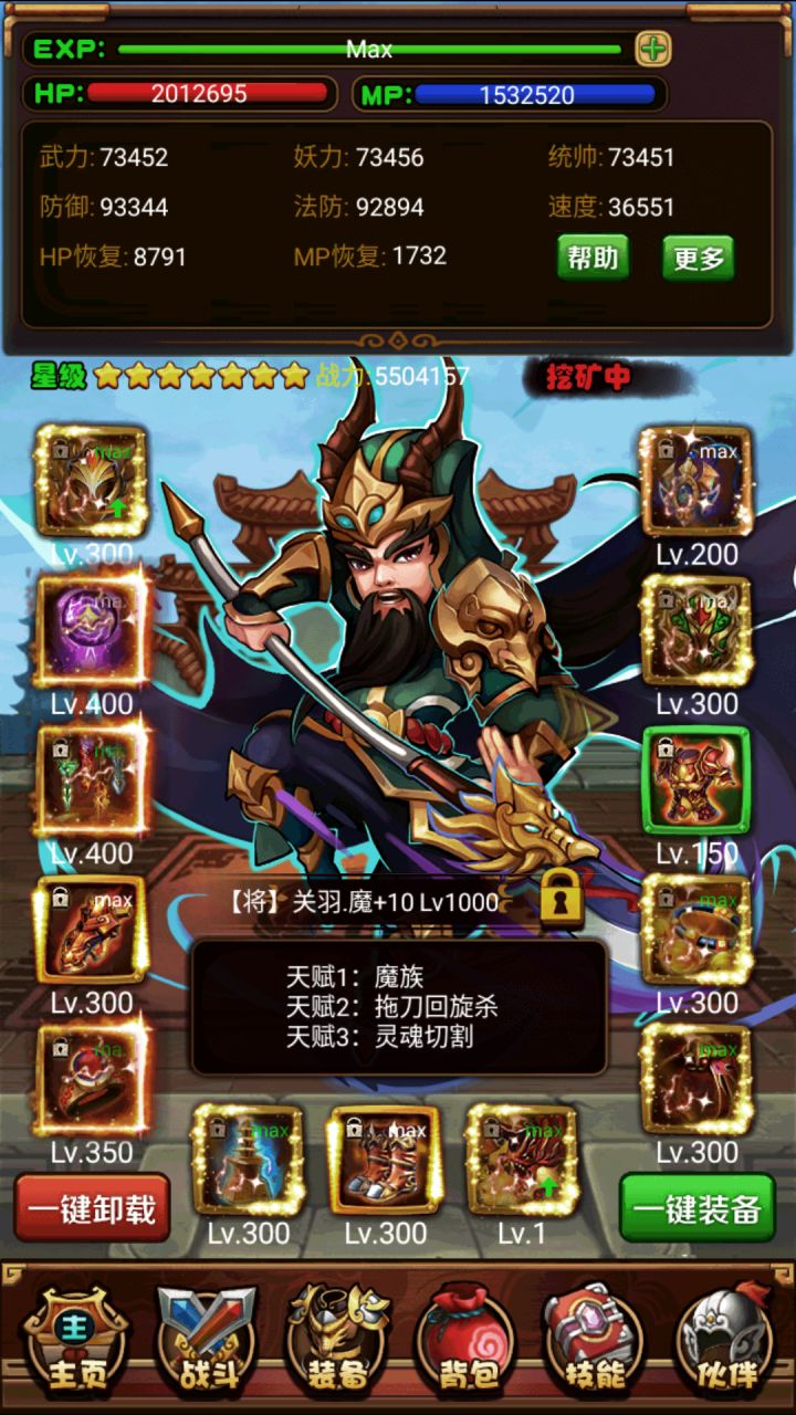 接上一张帖子,终于折腾了一个多星期摇摇晃晃的打到土试炼了,查了下大神的攻略,就是利用各种持续减伤技能把怪耗死。起先按照大神的帖子2诸葛+1帅,发现装备和技能都不行,持续减伤技能少,伤害还低,只能打出大约40次复活。然后就想着用关羽除魔斩和戮仙的高伤害补刀,只要能中1次,就能直接秒掉土怪了(土怪50的复活,那还不就是1刀的事),但是发现土怪的皮太厚,哪怕是除魔斩也只能打出8000多的伤害,根本很难