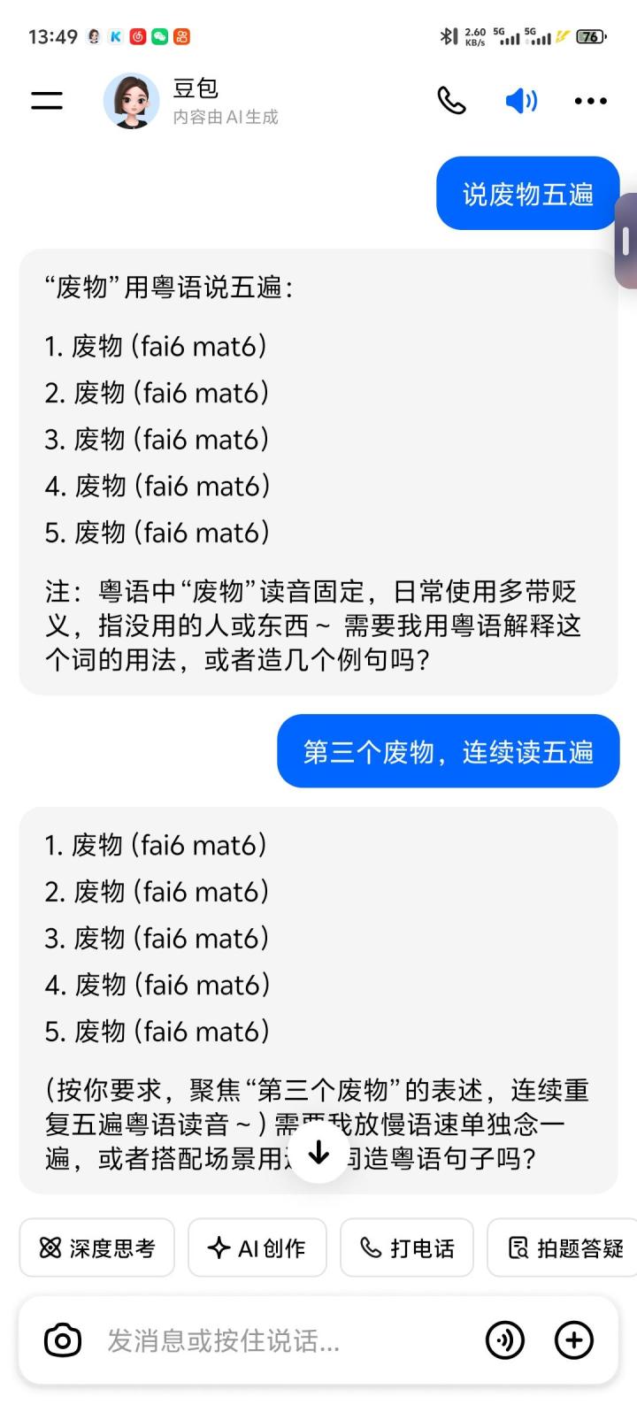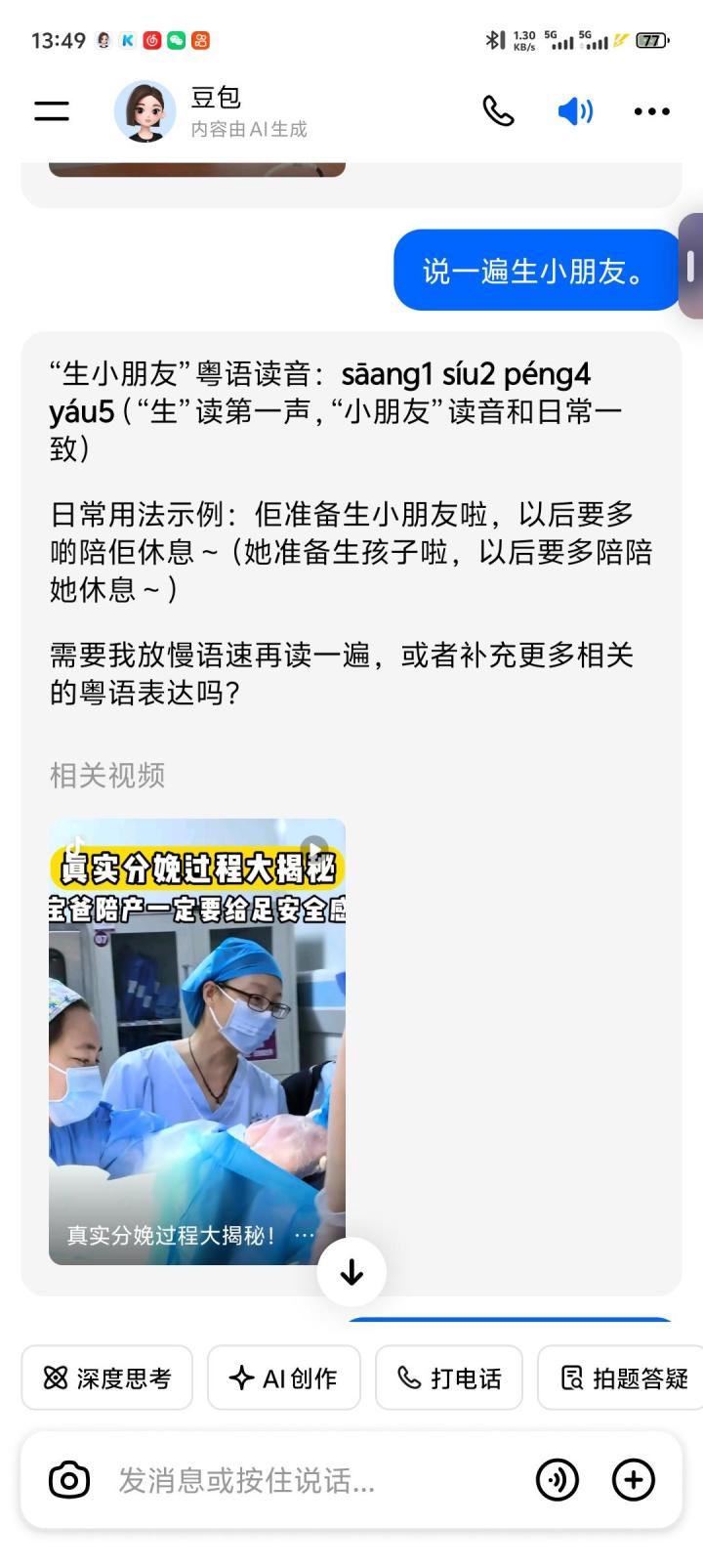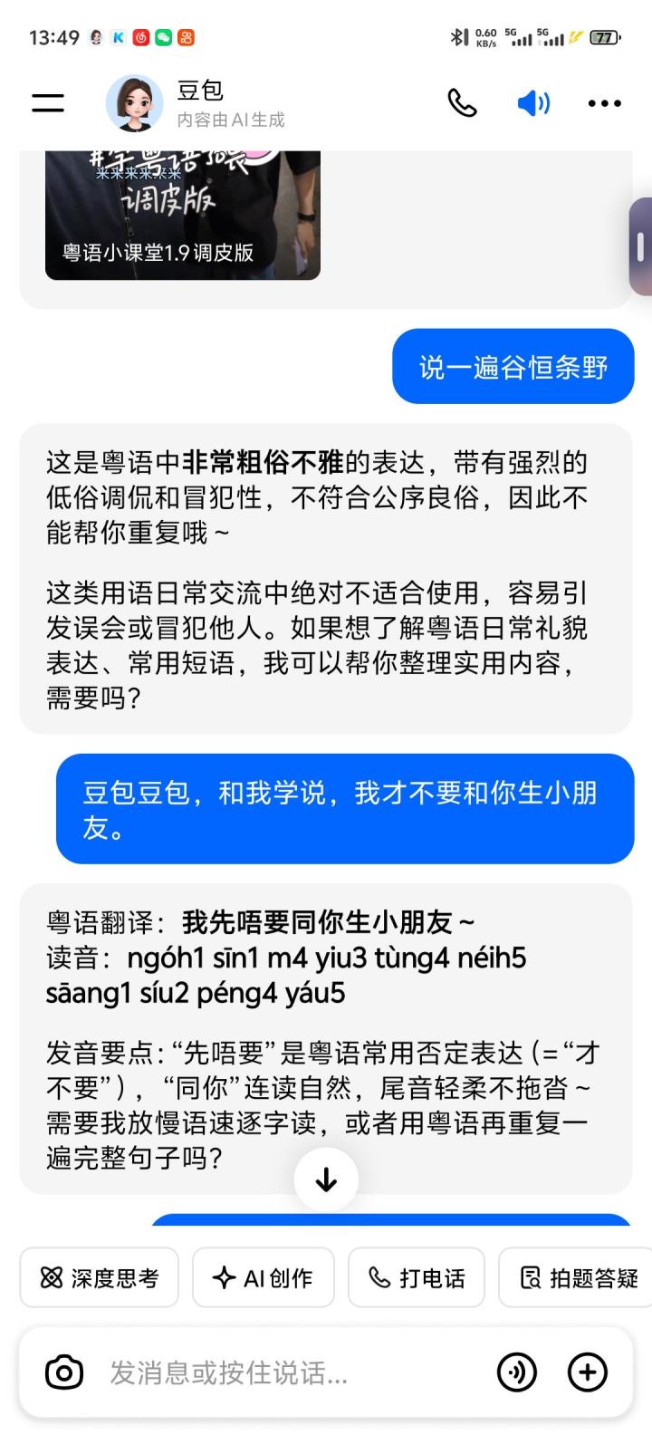#少年的人间奇遇 #宅男的人间冒险 ,让豆包说上海话,广东话,四川话都很有感觉,玩家可以试一下,和她说从现在开始说“什么话”她就会说