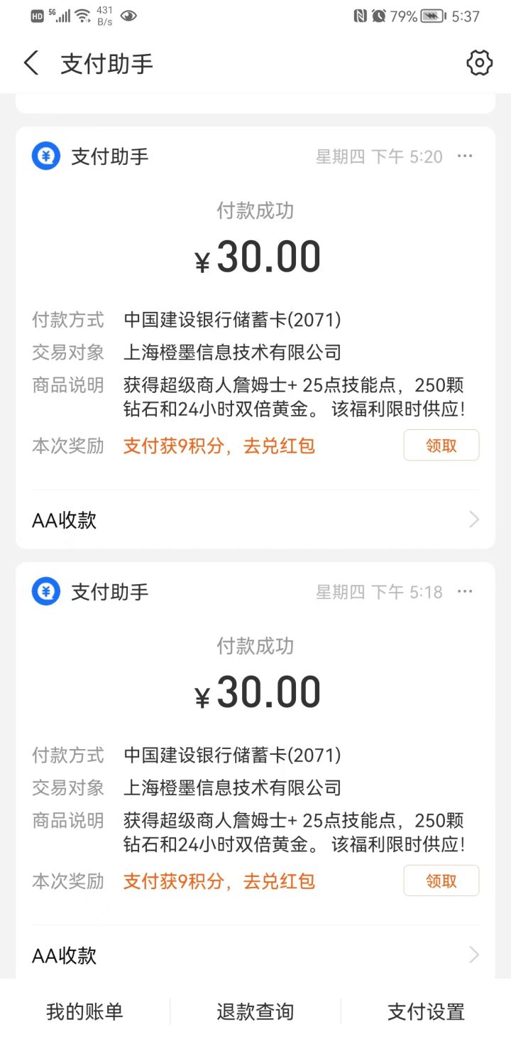 氪双地精没到账