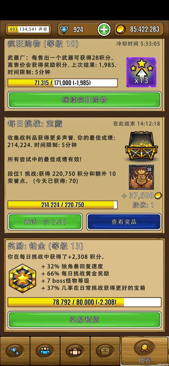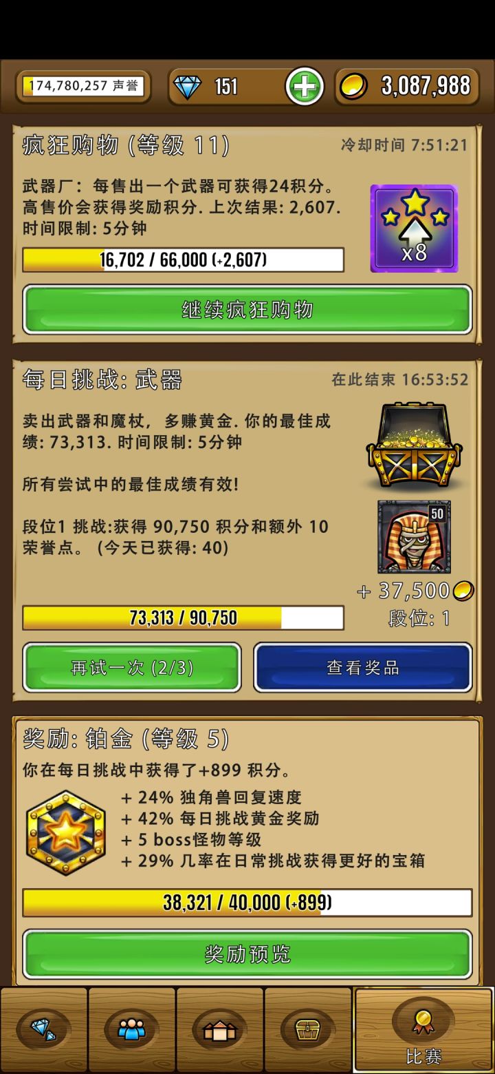 第一次日常任务完成70,而且金币爆仓了。冲击80再次失败(//∇//)