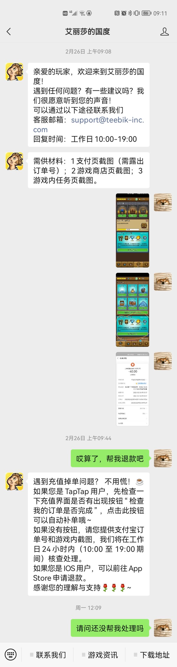 充值问题不给回复不给处理是什么情况呢?说好的集中反馈?说好的工作时间处理?图一微信,图二集中反馈贴,图三3.3登陆界面充值问题已经弄得我不想玩了,我也没享受到权利,麻烦直接帮我退款😅