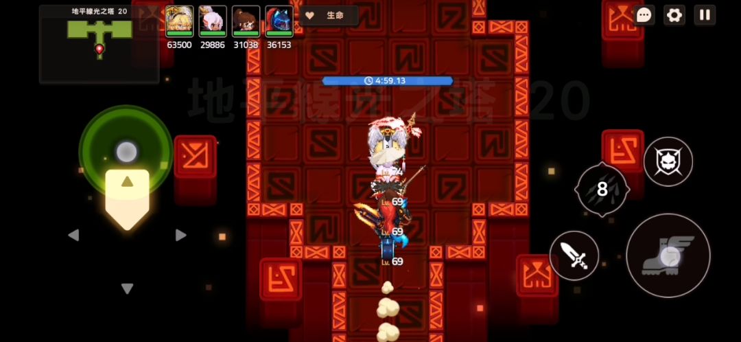 首先说下这次的地平线最难的就是38层,策划在38真是给了个大大的惊喜,一般的迷宫关卡都是4个房子,38有5个,我在打完BOSS后欢喜的踏上加速条以为可以结束了,然而站在我面前的是一房子怪。。。38层我的配置是,满觉暗刀(队长),满觉暗坦,60级酱油暗炮,69酱油吸血鬼,前两间房进门暗刀普工一下右下方开技能接连锁以最快的速度秒掉小怪确保吸血鬼存活,第三间房进门了向前普工两下等最前面2只怪走到一起开